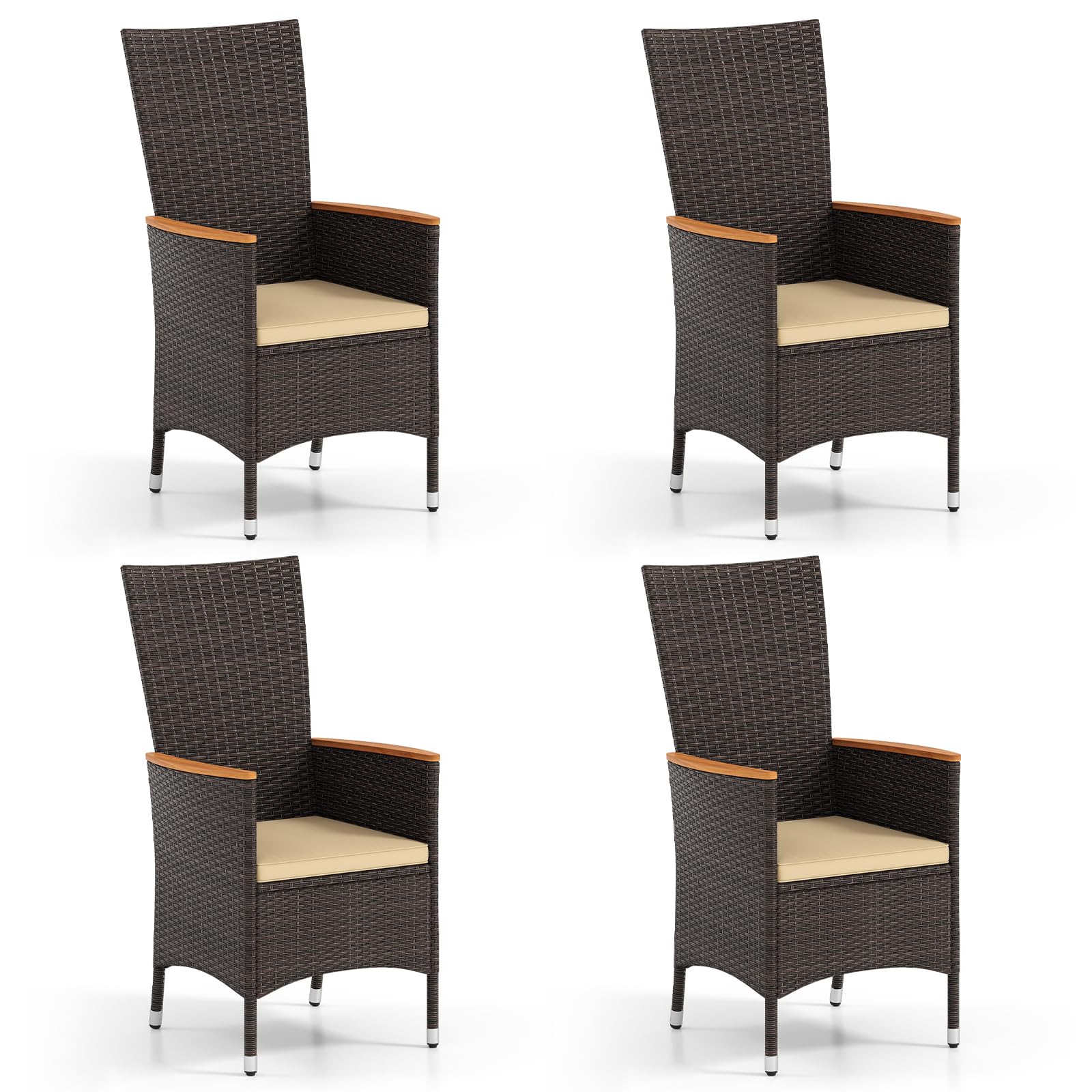Tangkula Patio Chairs Set of 4 w/Curved Backrest