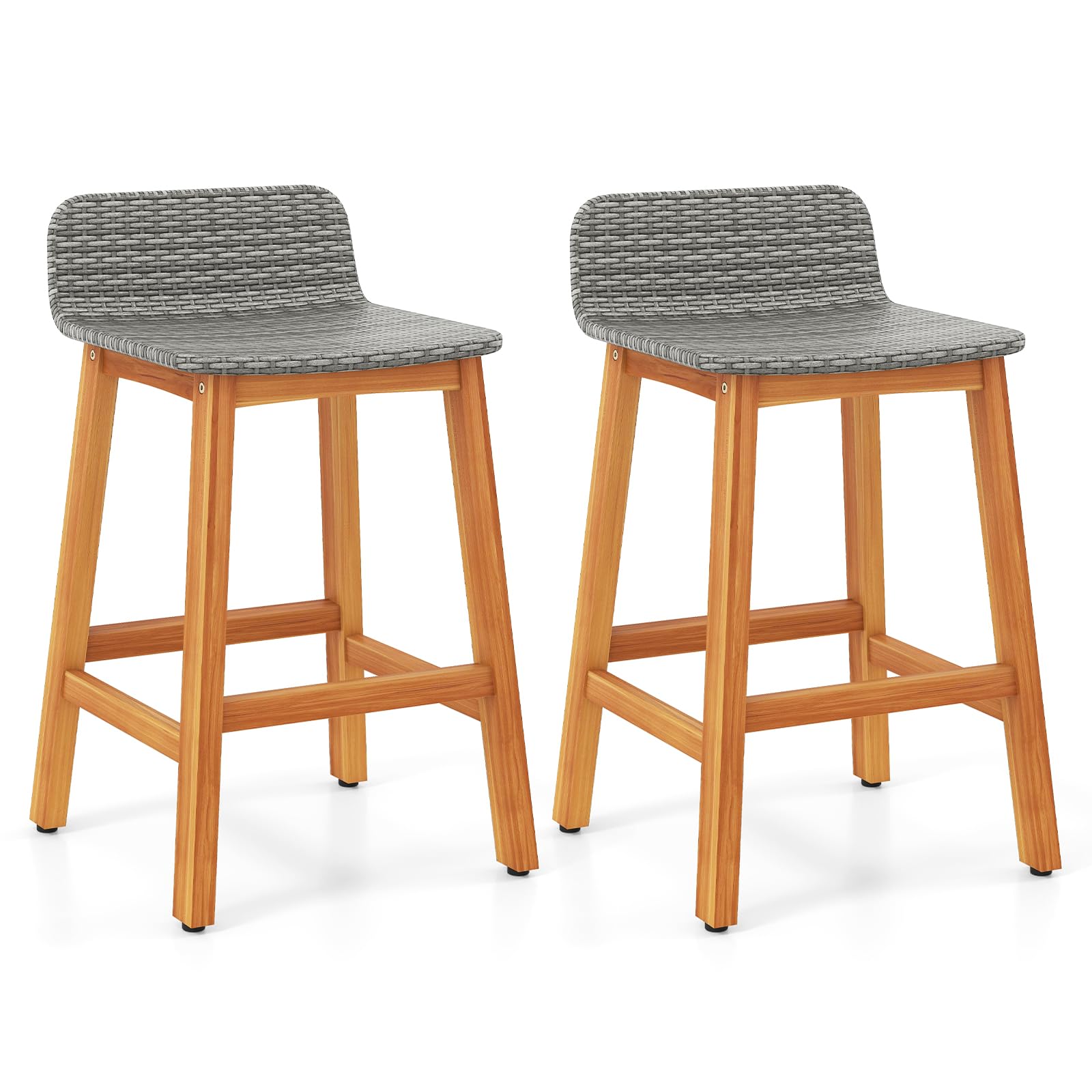 Tangkula Set of 2/4 Outdoor Acacia Wood Bar Stools