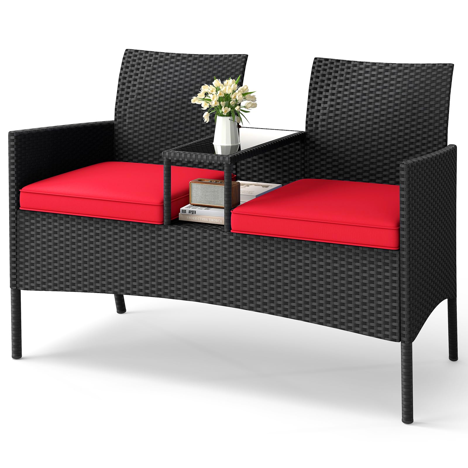 Tangkula Patio Loveseat with Built-in Table