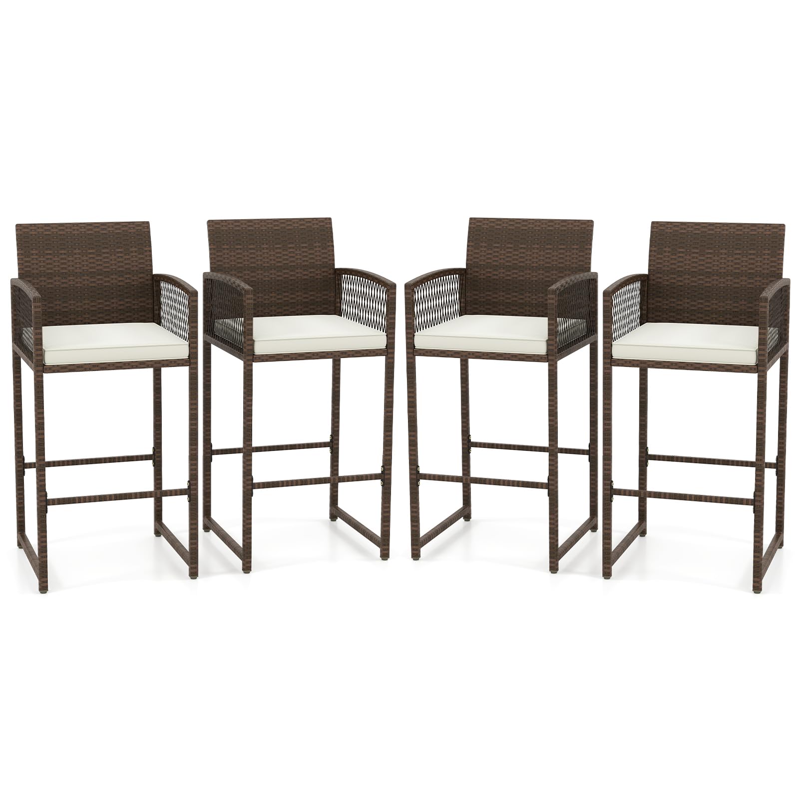 Tangkula Patio Bar Stools Set of 2/4 PE Rattan Bar Height Chairs