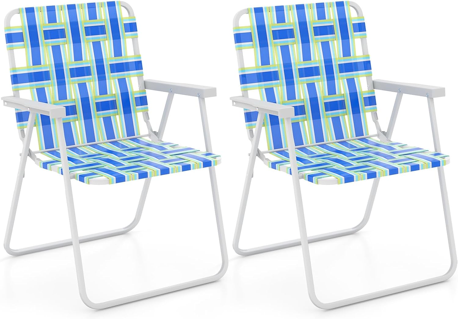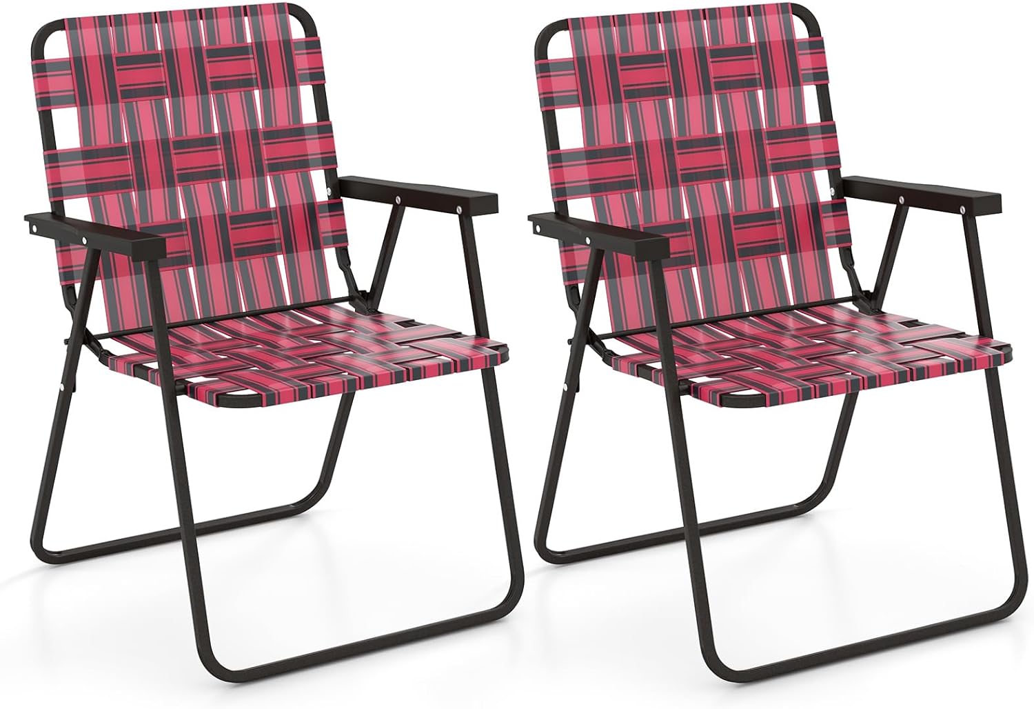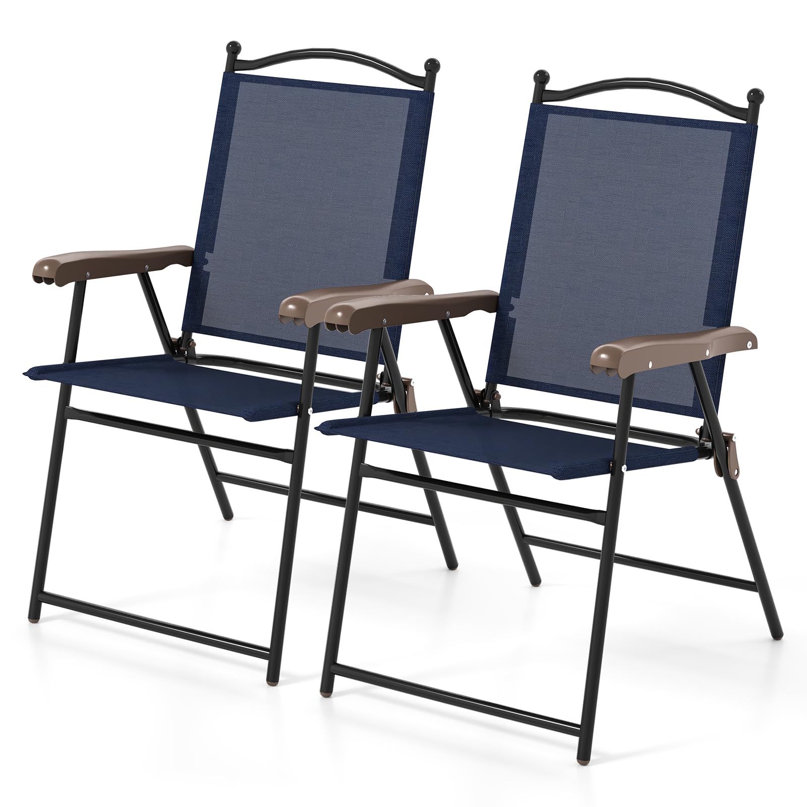 Tangkula Set of 2 Patio Folding Chairs, Portable Sling Back Chairs with Armrests and Metal Frame