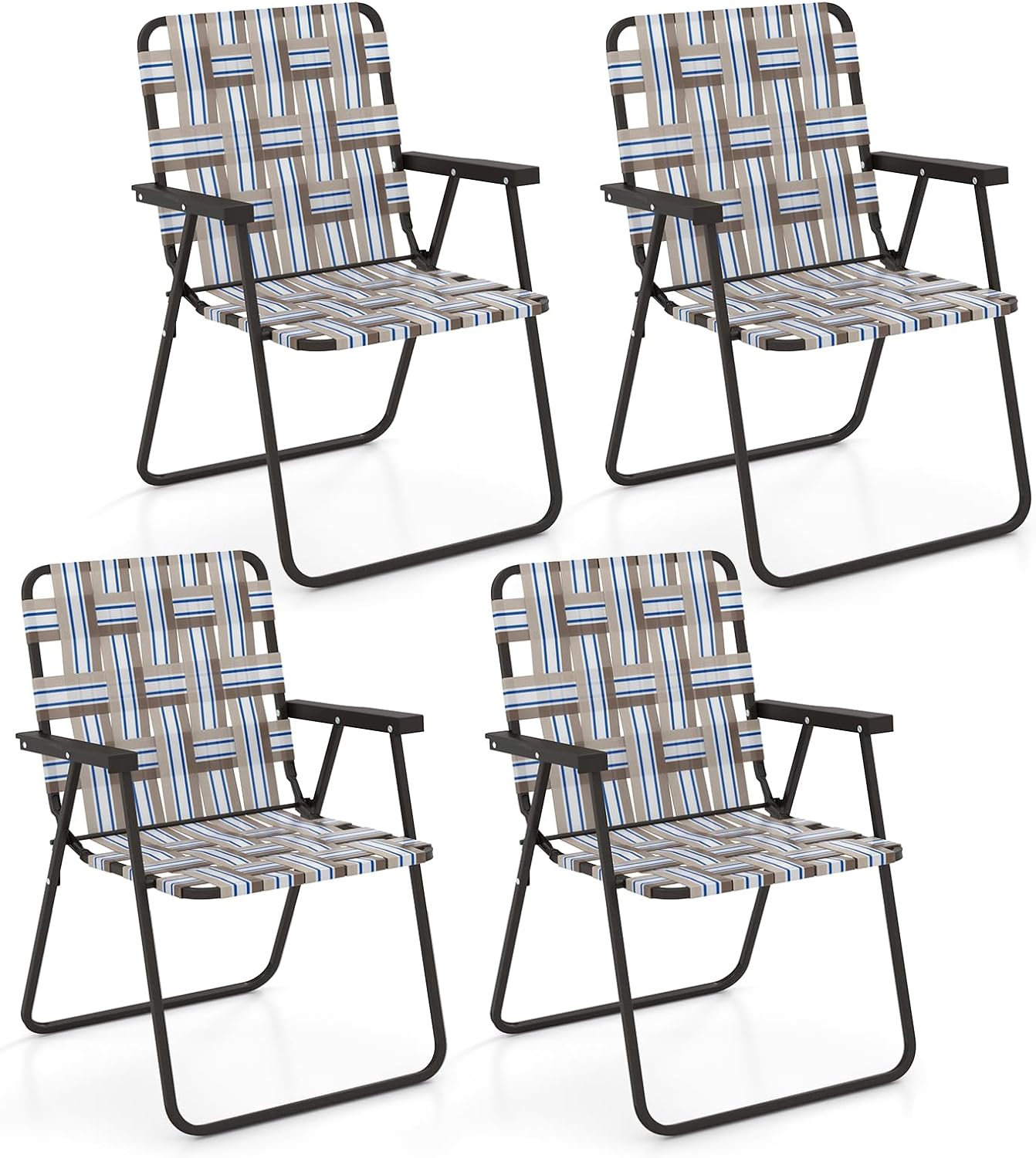 Tangkula Patio Folding Chairs Set of 4, Outdoor Portable Camping Chairs with Breathable Fabric Backrest & Seat