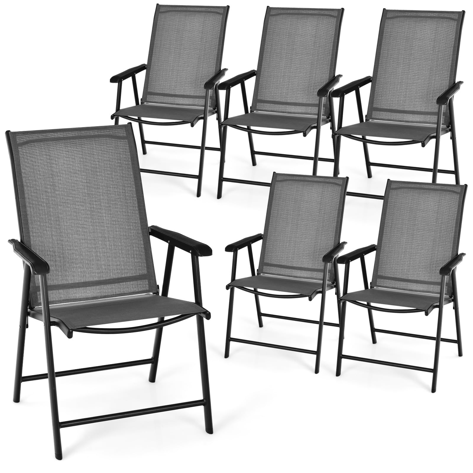 Tangkula Set of 6 Patio Folding Chairs, Outdoor Folding Lawn Chair Set with Armrest, Heavy Duty Steel Frame