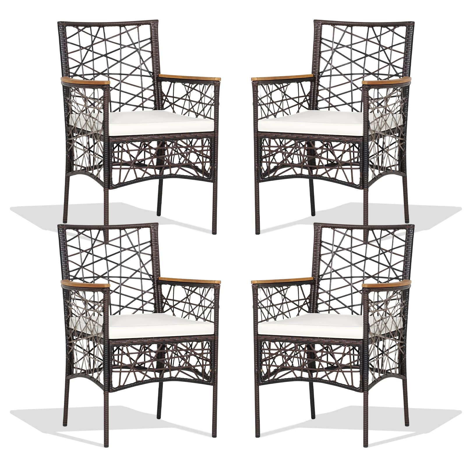Tangkula Patio Wicker Dining Chair Set of 2, Outdoor PE Rattan Armchairs with Removable Cushion