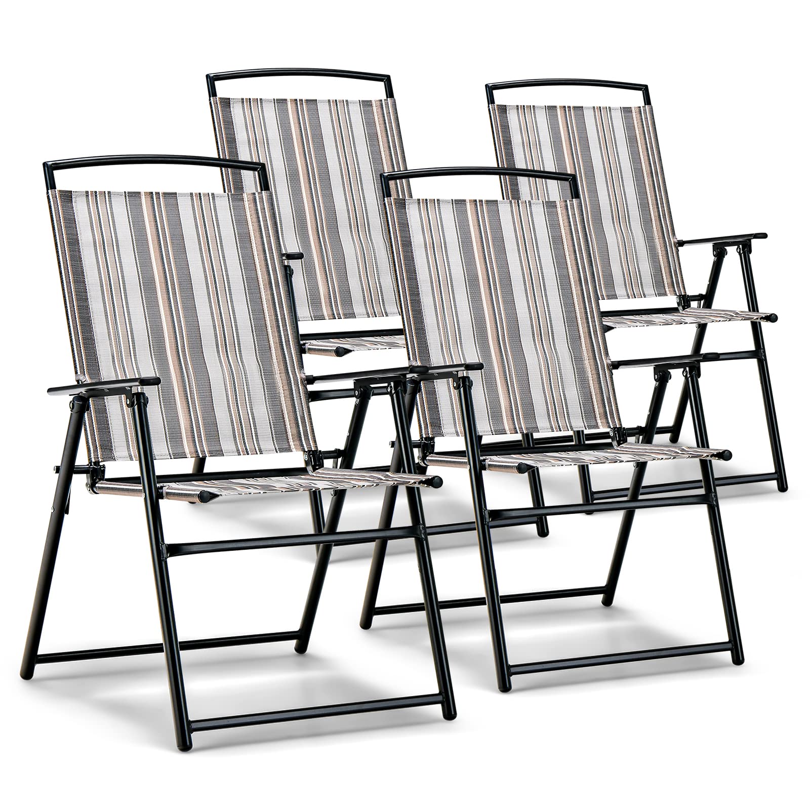 Tangkula Set of 4 Patio Folding Chairs, Foldable Patio Chairs Sling Chairs for Backyard Poolside Balcony