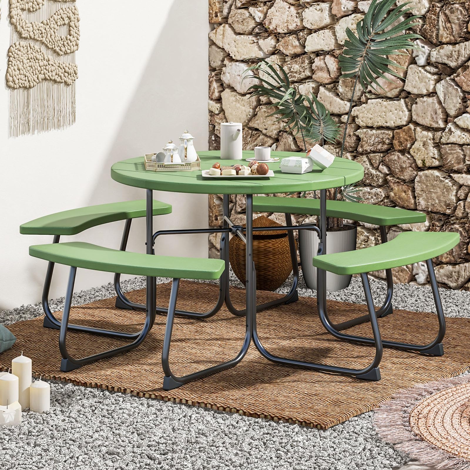 4 Built-in Benches & Spacious Tabletop: This round picnic table features four built-in benches, providing comfortable seating for up to 8 people. The spacious tabletop offers...