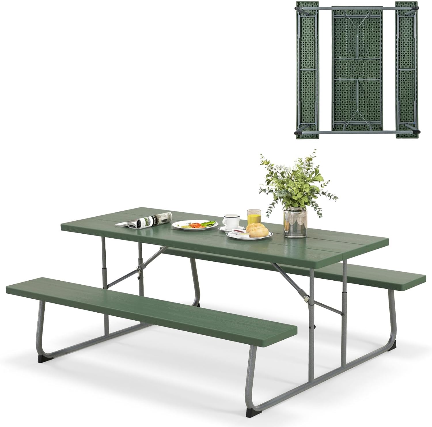 Superior HDPE Tabletop: Crafted from premium HDPE material, the tabletop of our picnic table set is fade-resistant, weather-proof and easy-to-maintain, ensuring lasting use in outdoors. Plus,...