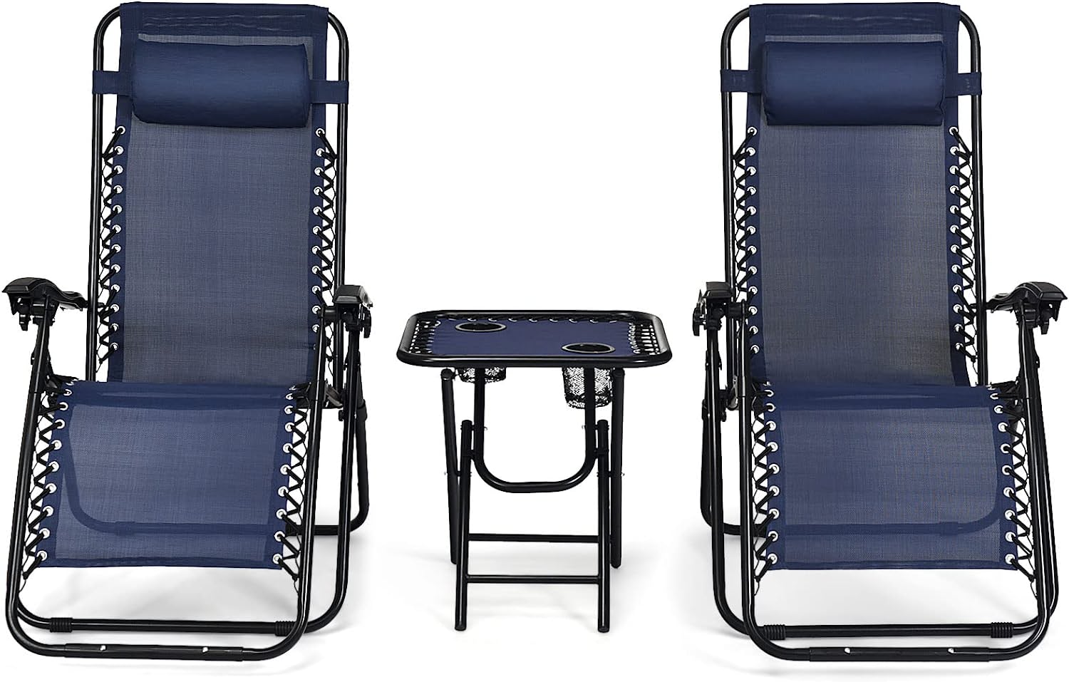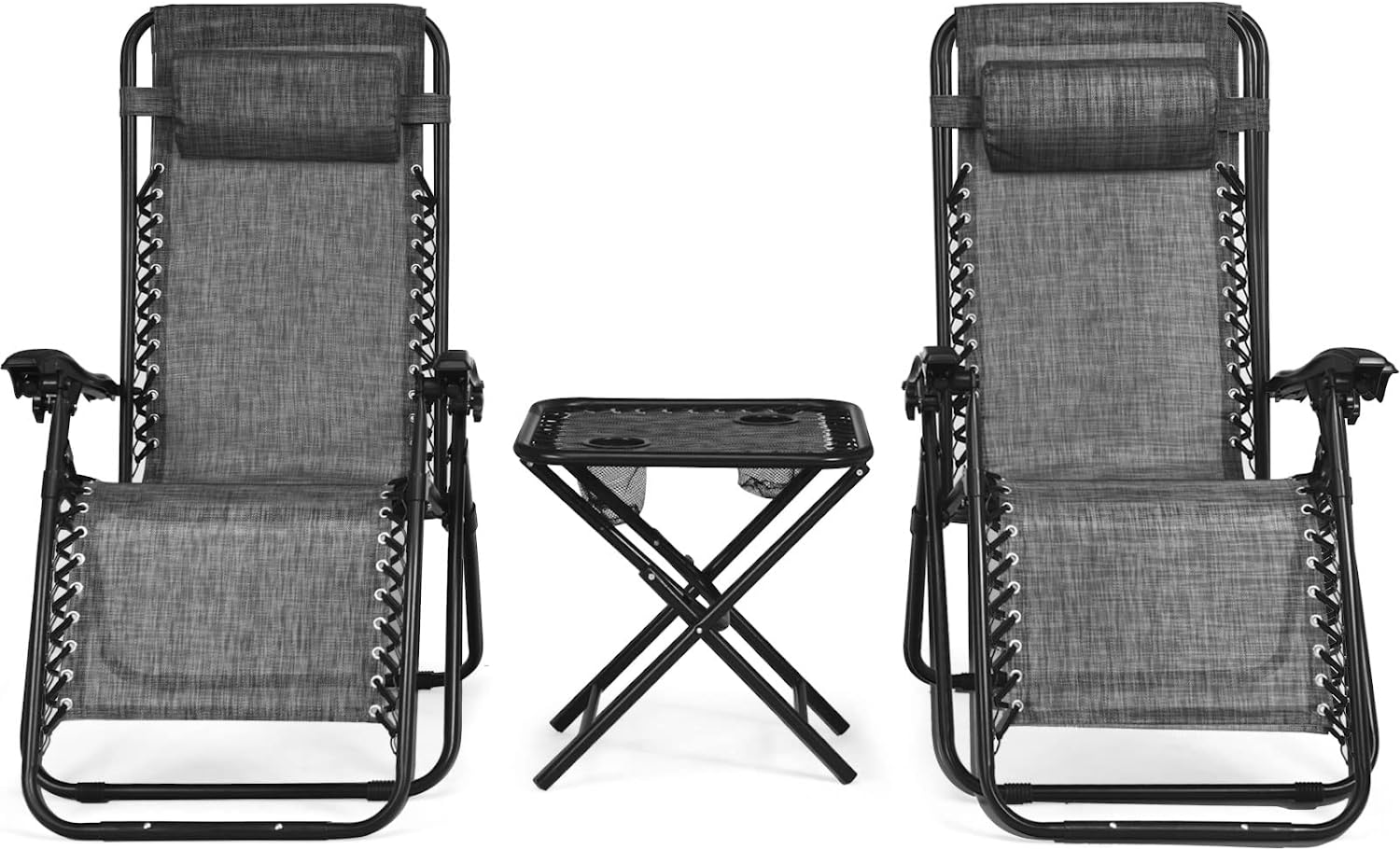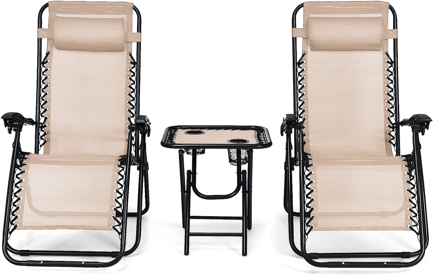 Tangkula 3 Pieces Outdoor Zero Gravity Chair Set, Folding Reclining Lounge Chair with Adjustable Backrest