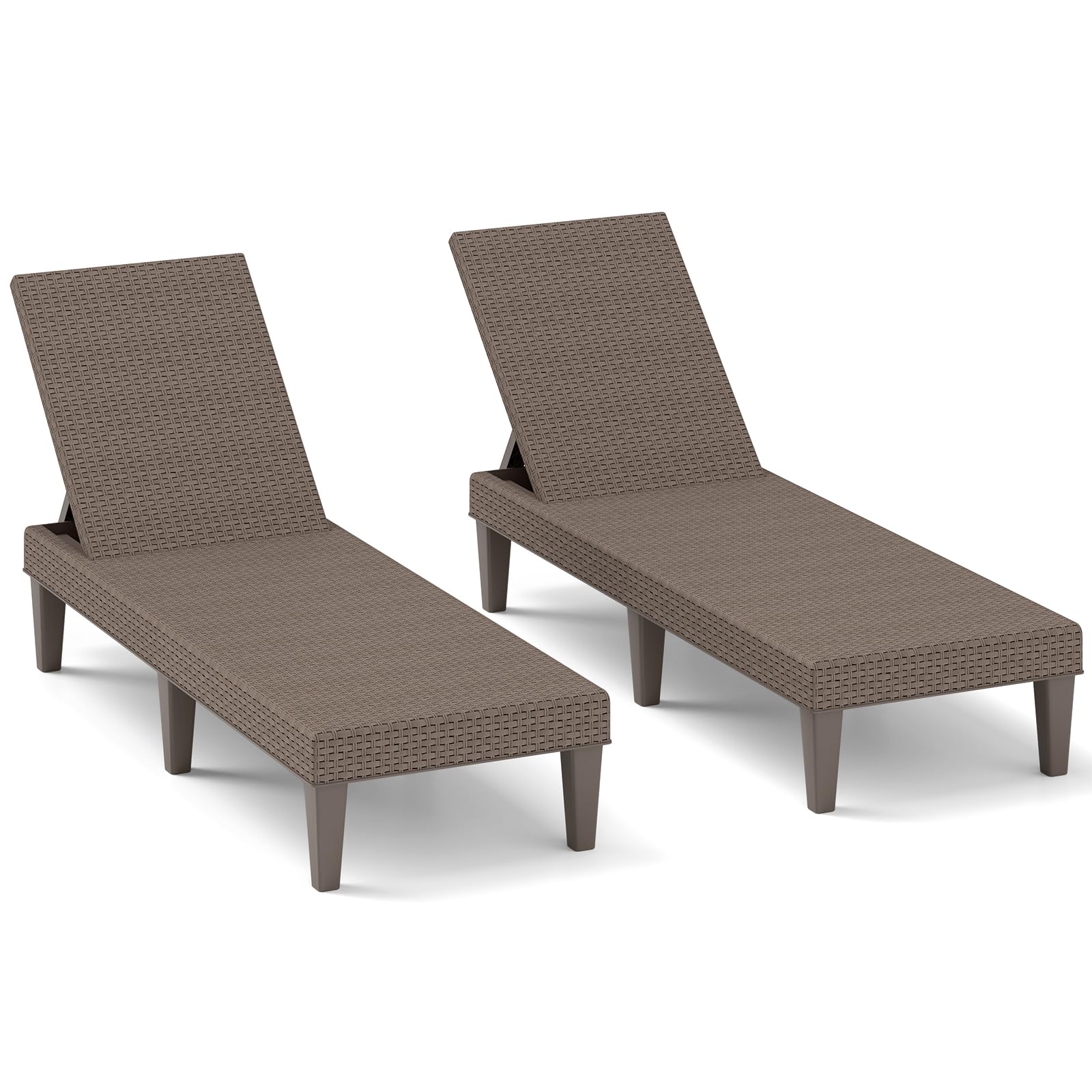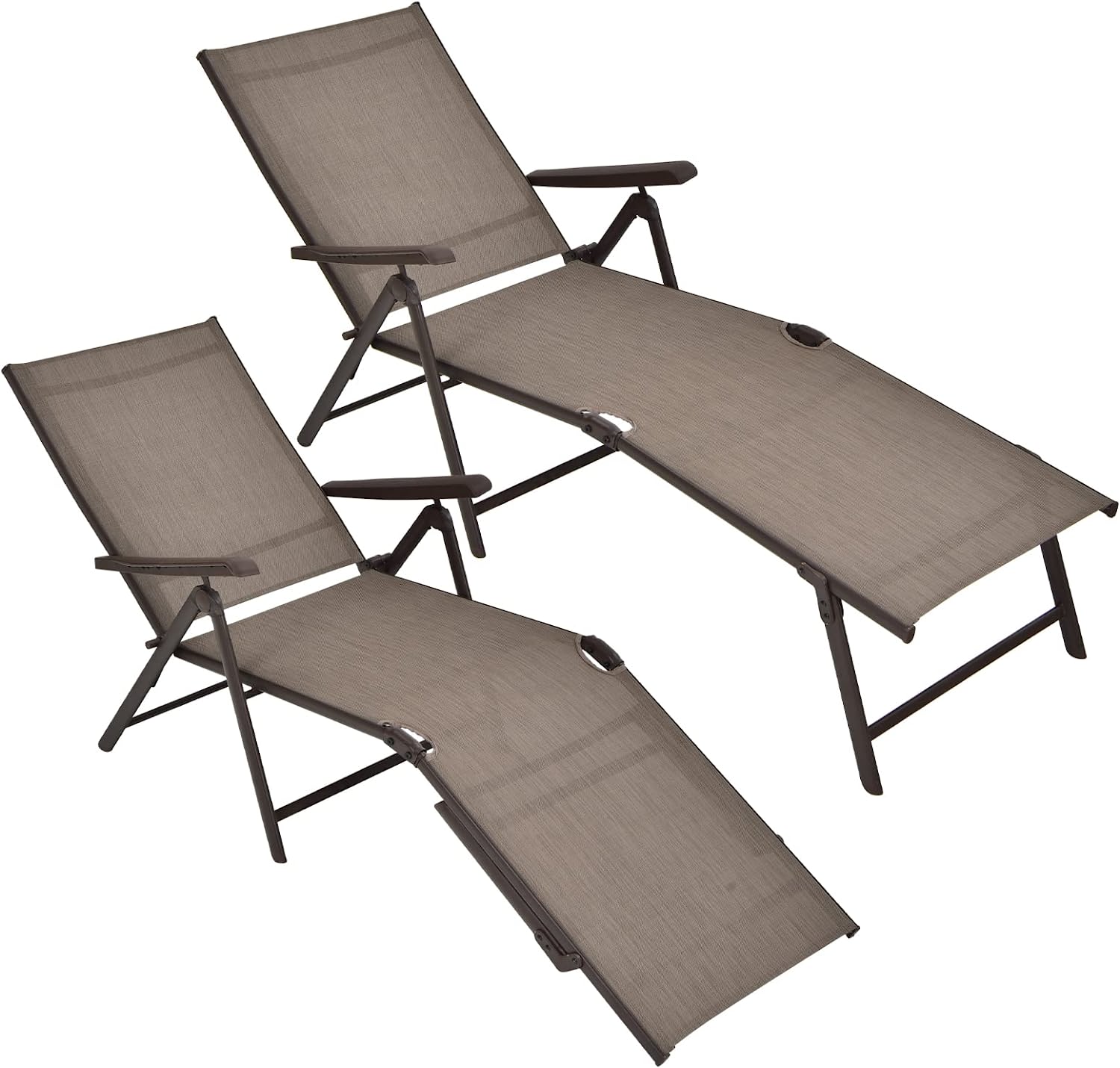 Tangkula 2 Piece Patio Adjustable Folding Stackable Chaise Lounge W/ 5-Position Backrest (Brown)