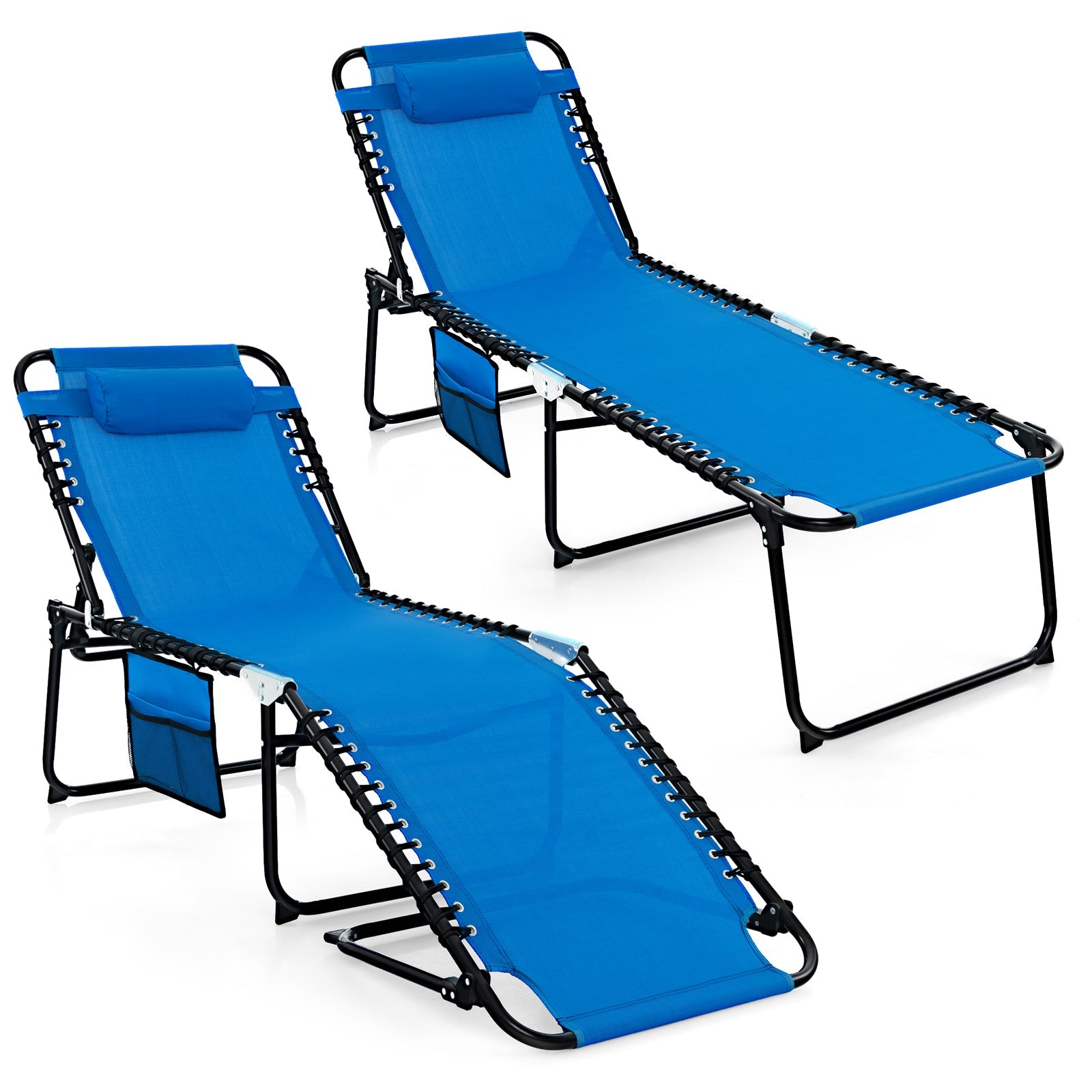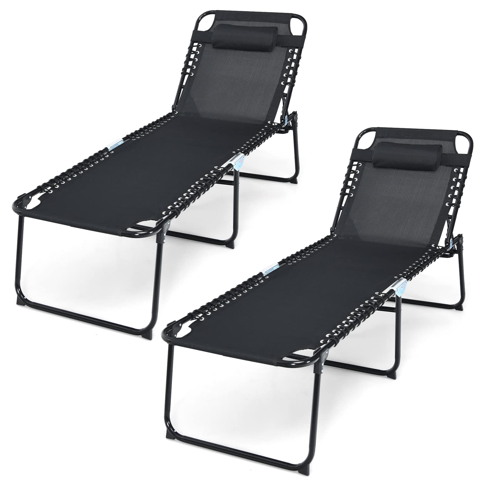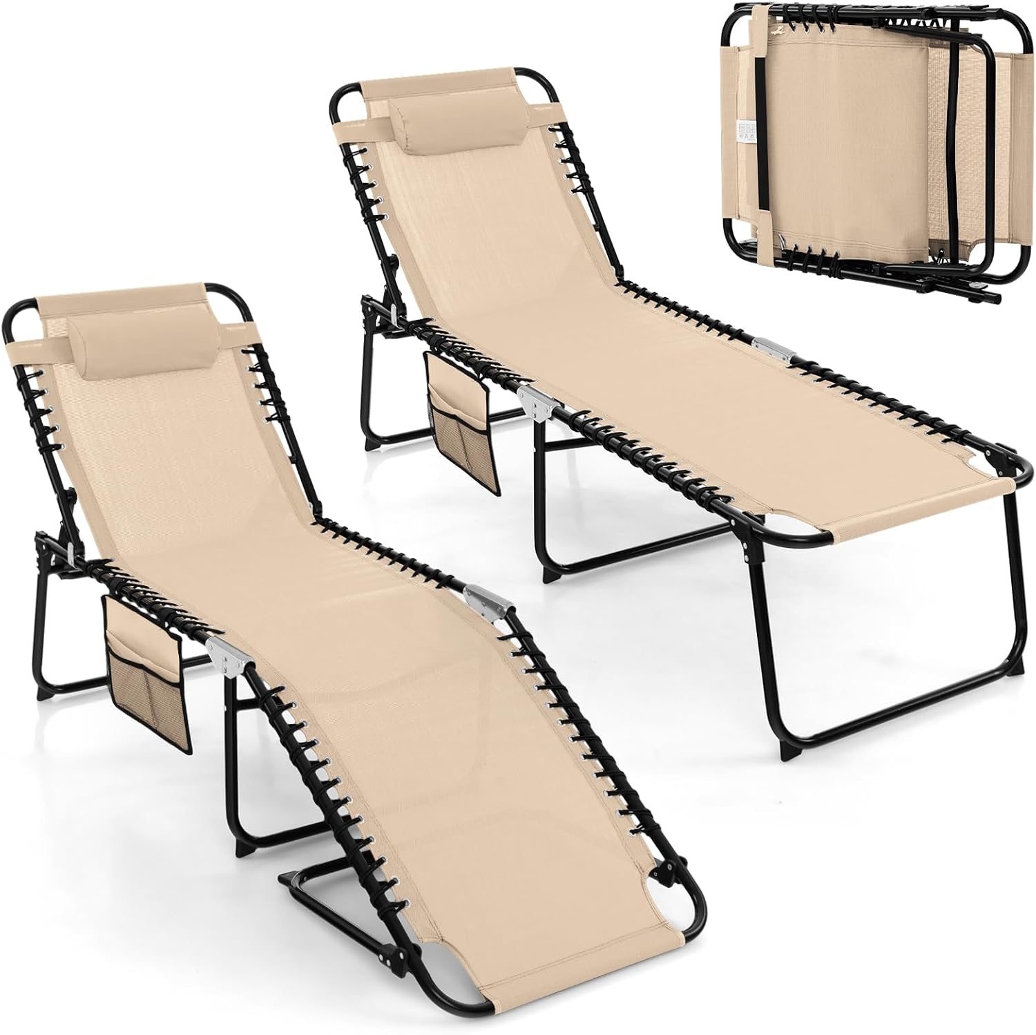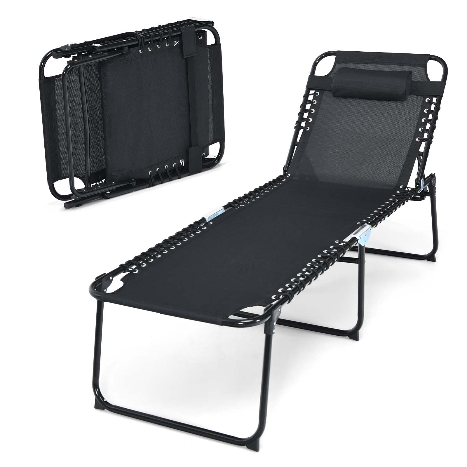 Tangkula Foldable Beach Lounge Chair for Outdoor, Reclining Chair with Removable Headrest