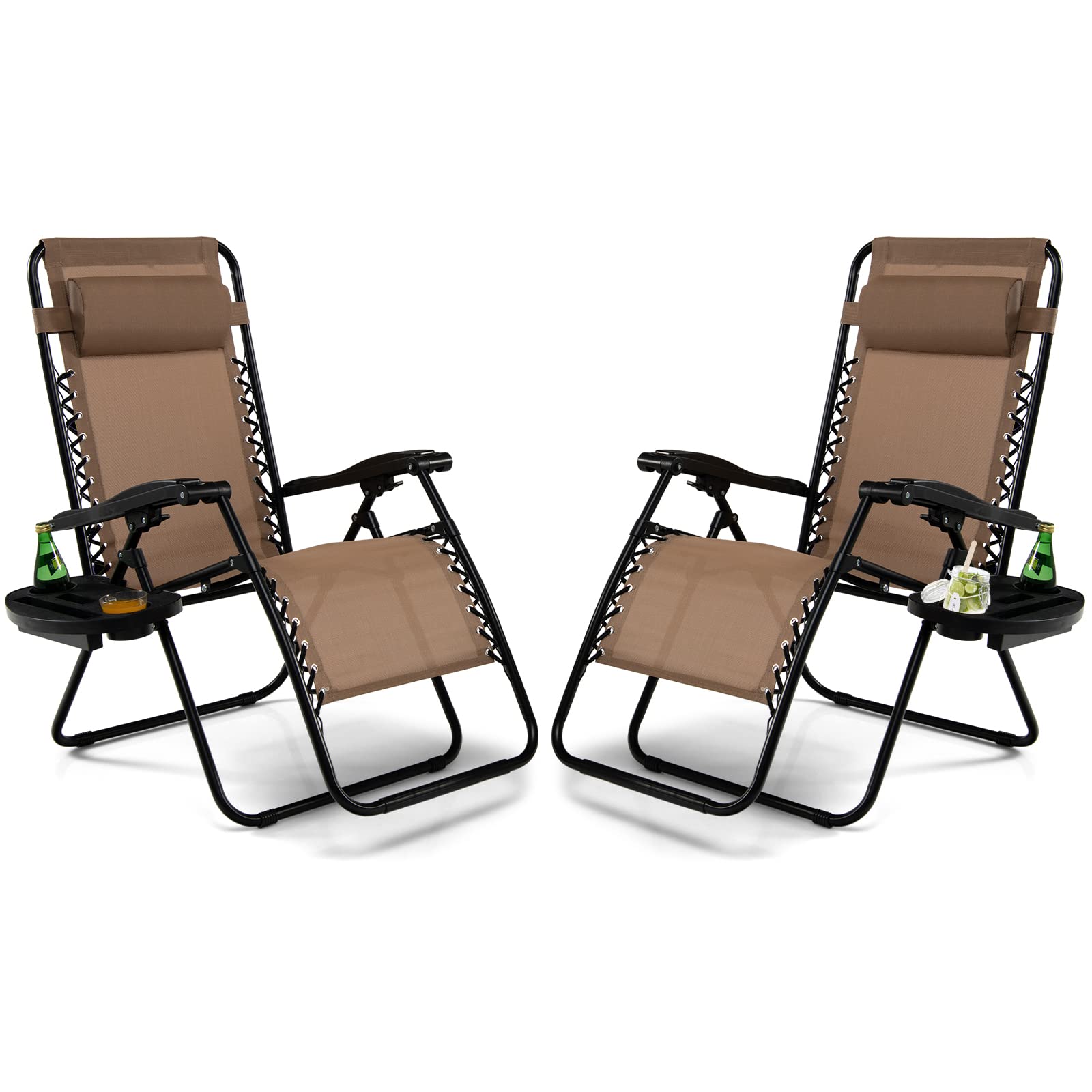 Tangkula Outdoor Chaise Lounge Chair Set of 2,Zero Gravity Folding Stackable