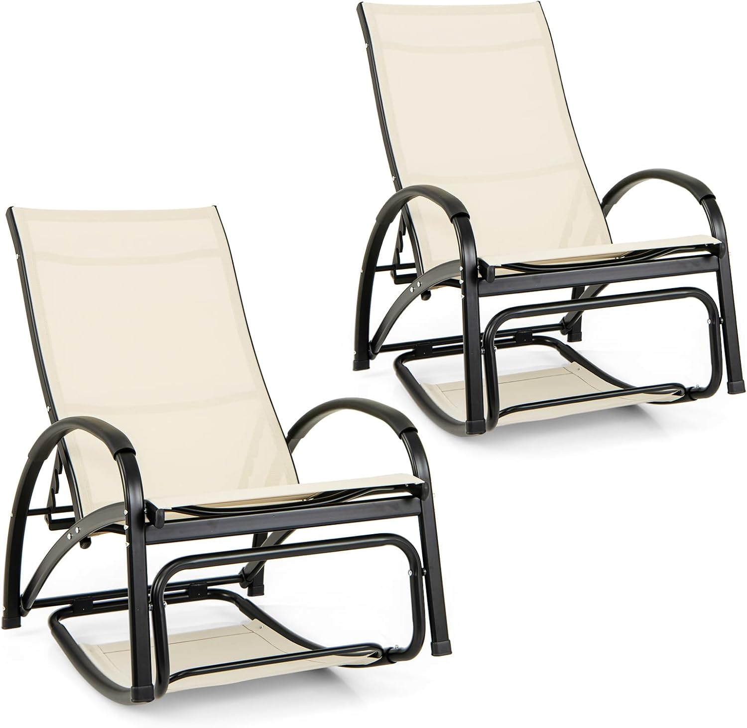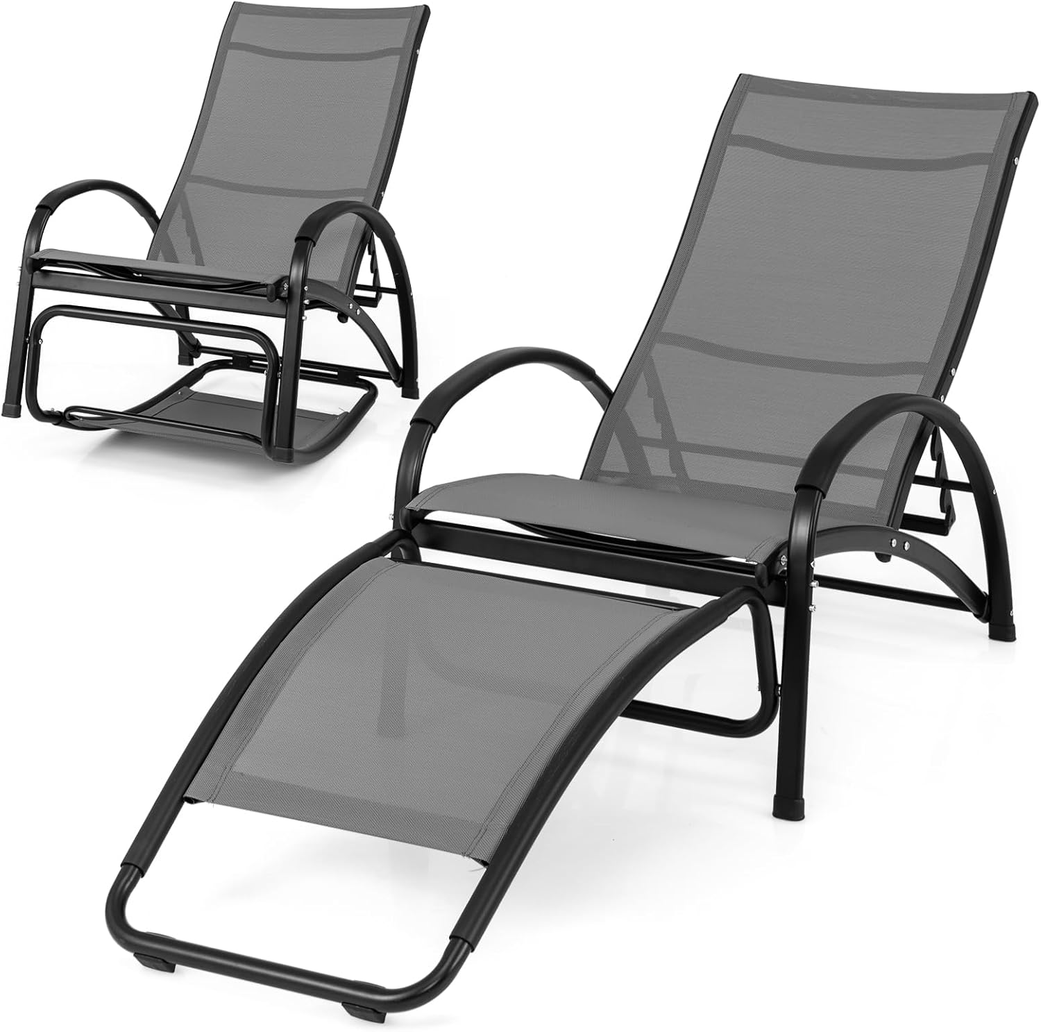 Tangkula Outdoor Chaise Lounge Glider Chair with Armrests and Pillow