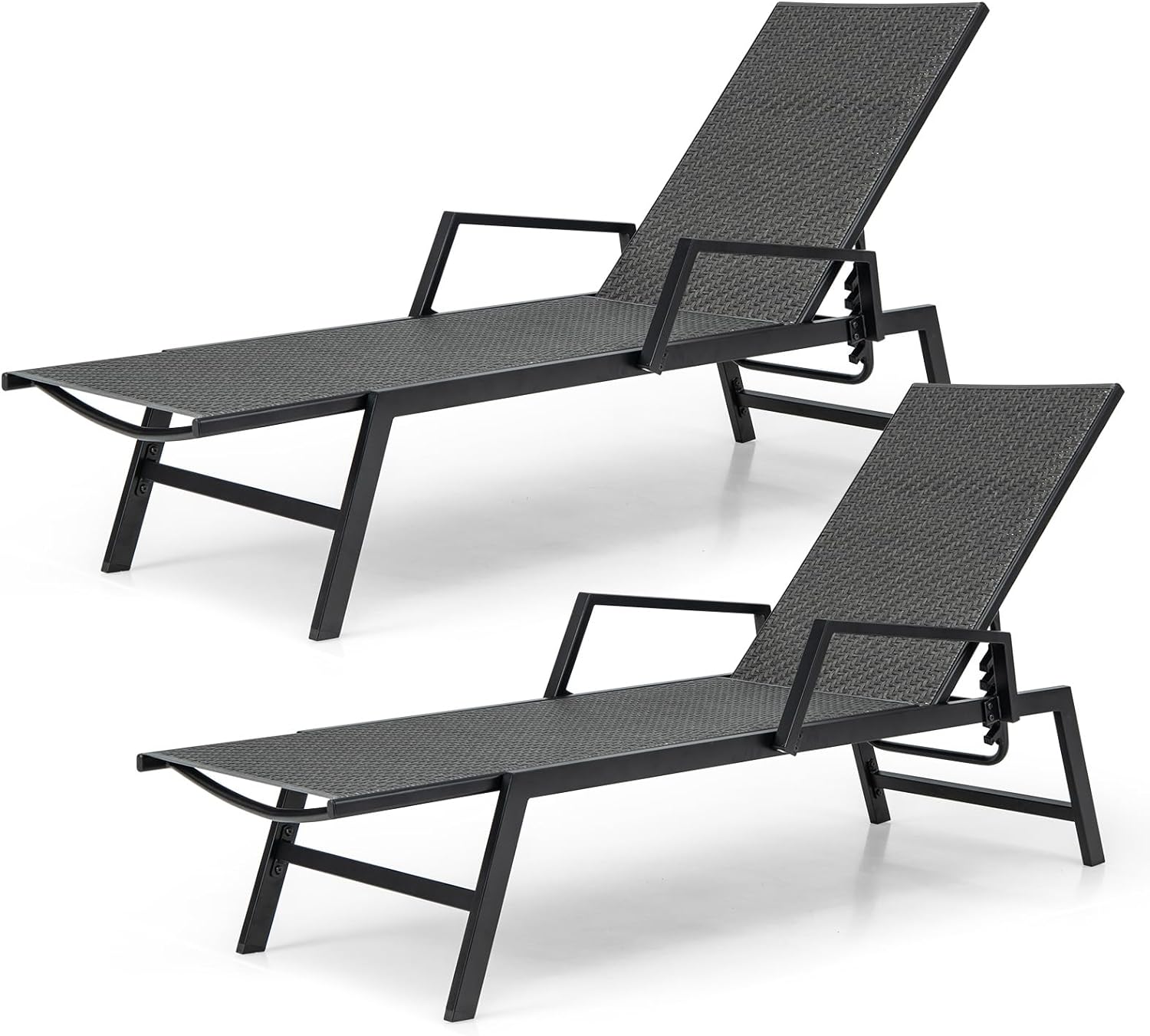 Tangkula Outdoor Chaise Lounge Chair Set, Rattan Patio Chaise with Armrests & 4-Level Backrest