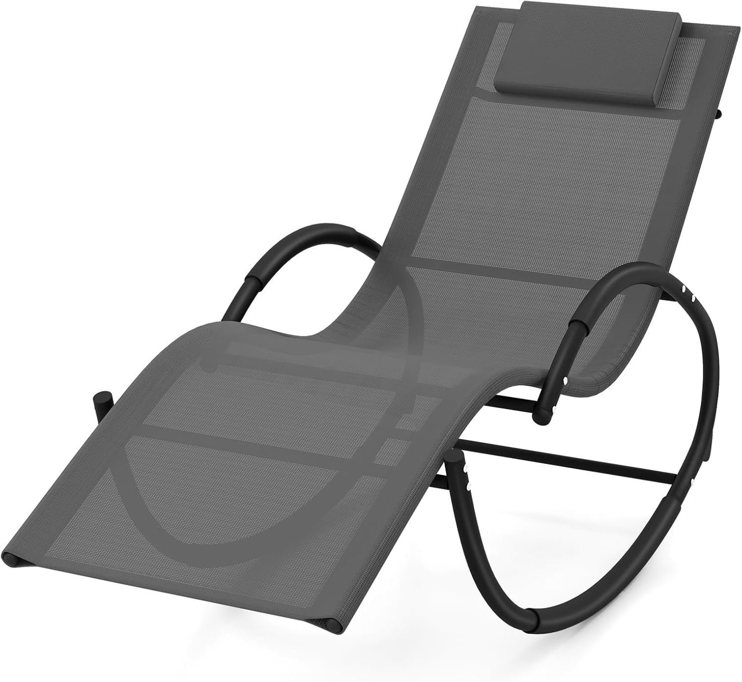 Tangkula Rocking Lounge Chair Outdoor, Zero Gravity Chaise Lounger with Removable Headrest, Fabric Backrest & Seat