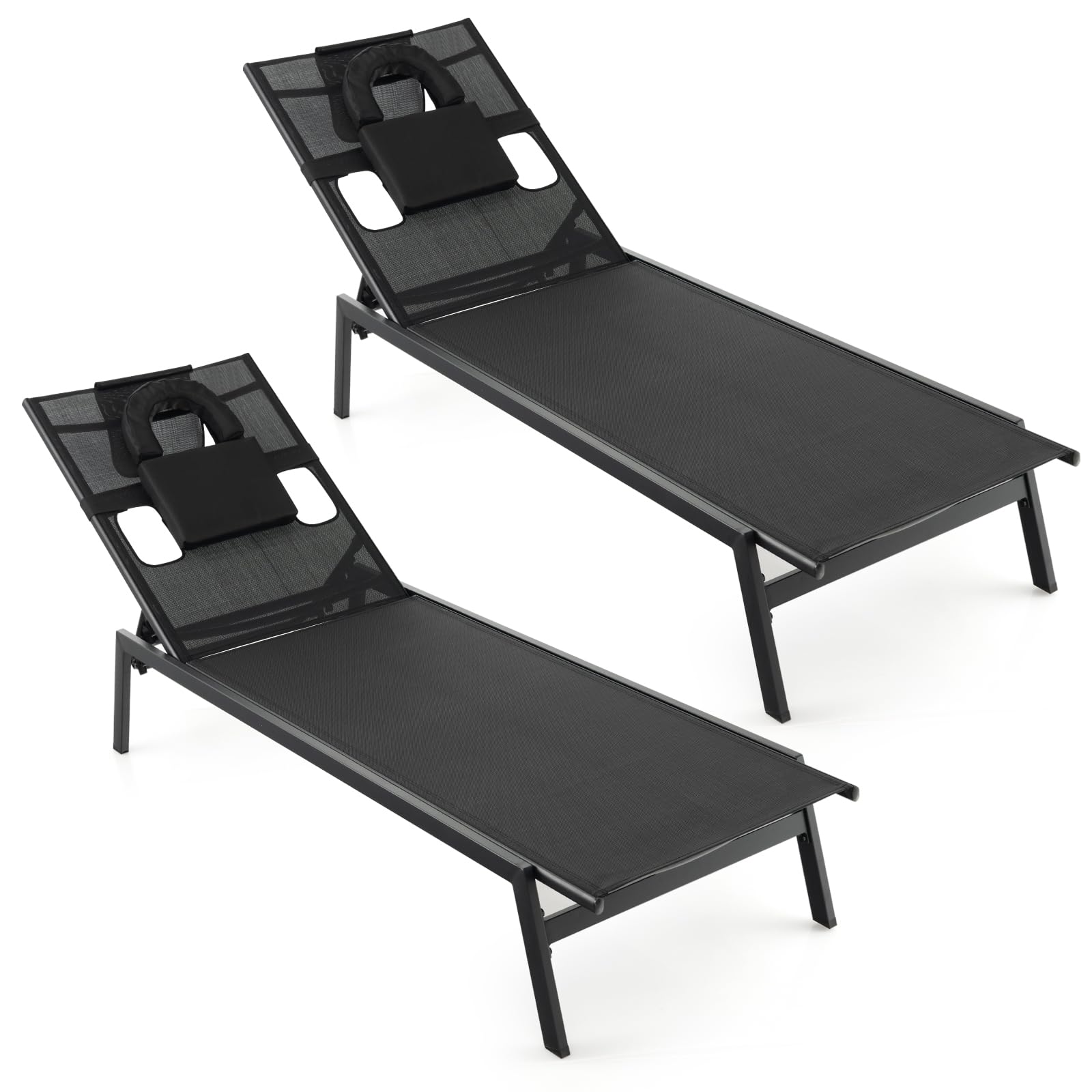 Tangkula Outdoor Lounge Chairs Set of 1/2, Patio Folding Chaise Recliner with 6-Level Backrest