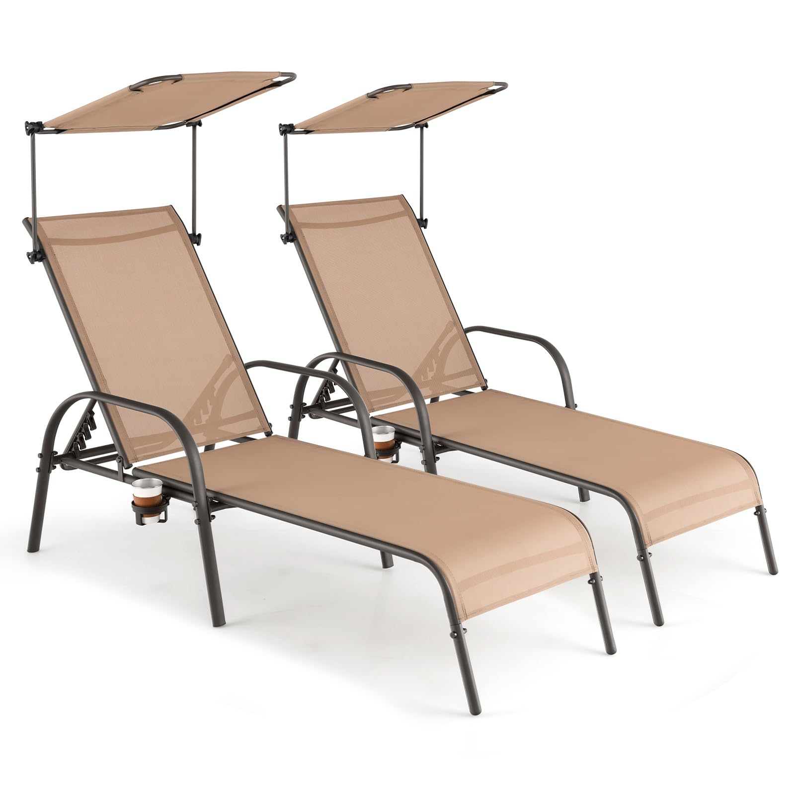Tangkula Patio Chaise Lounge Chair, Outdoor Recliner with Adjustable Canopy & Cup Holder