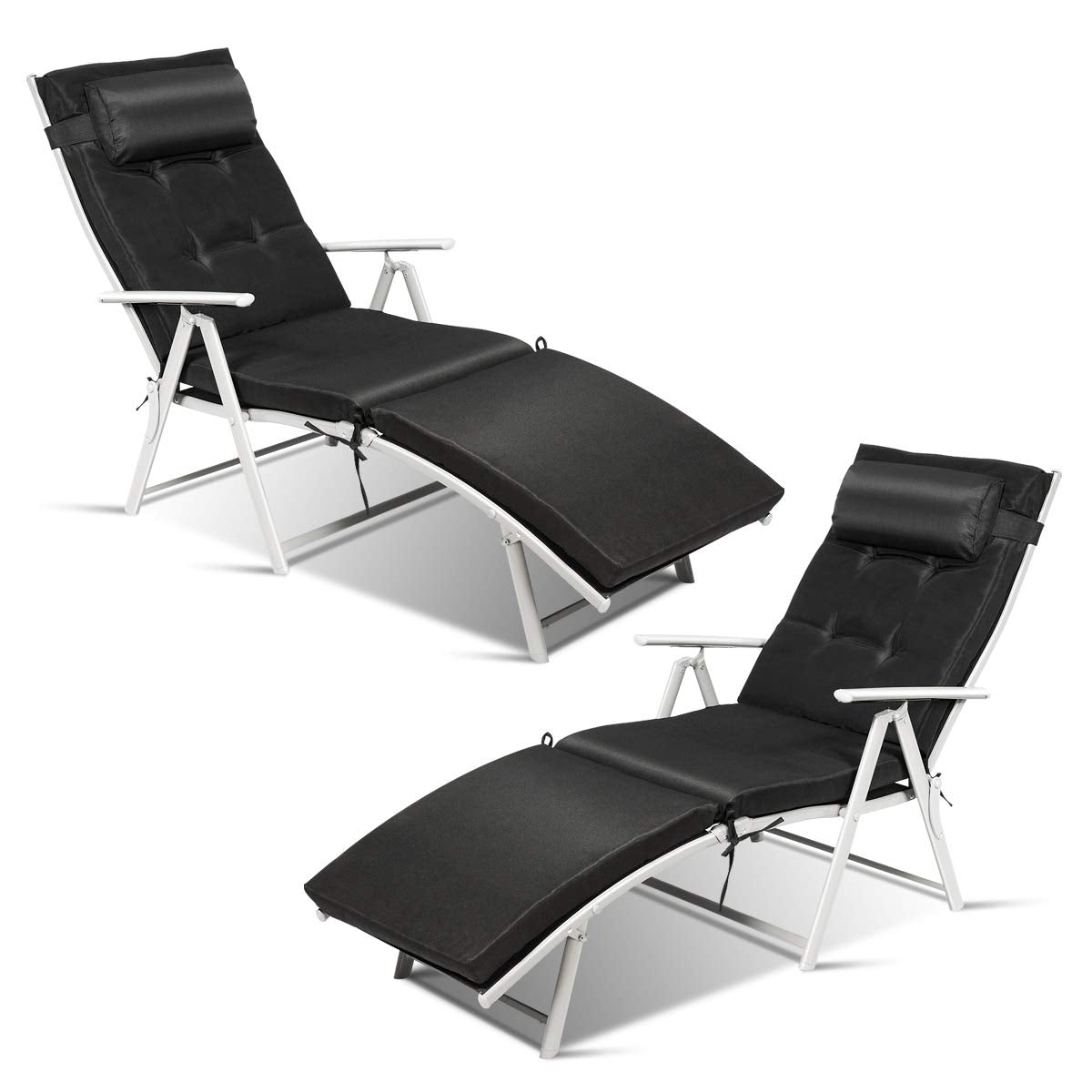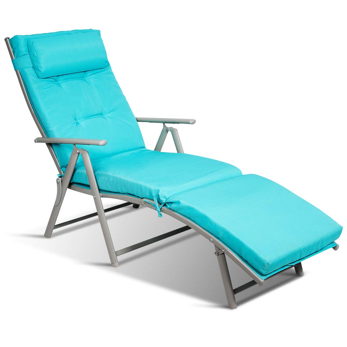 Tangkula Outdoor Folding Chaise Lounge Chair, Lightweight Recliner Chair w/ 7 Adjustable Backrest Positions