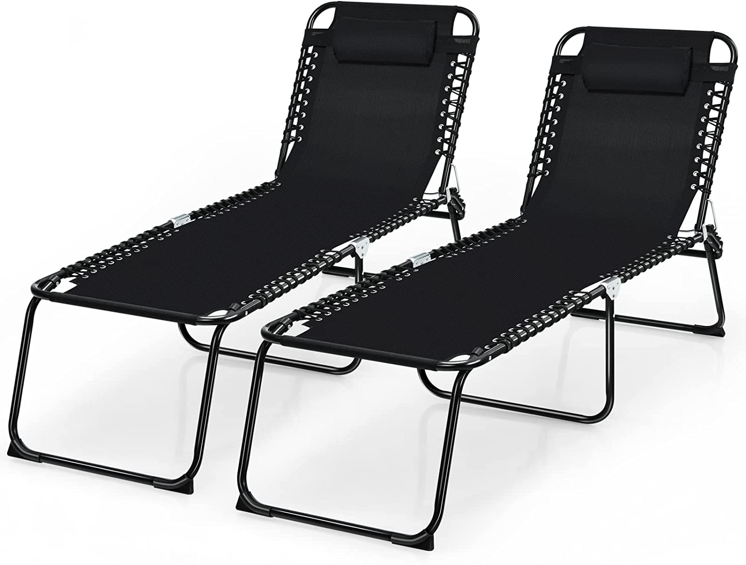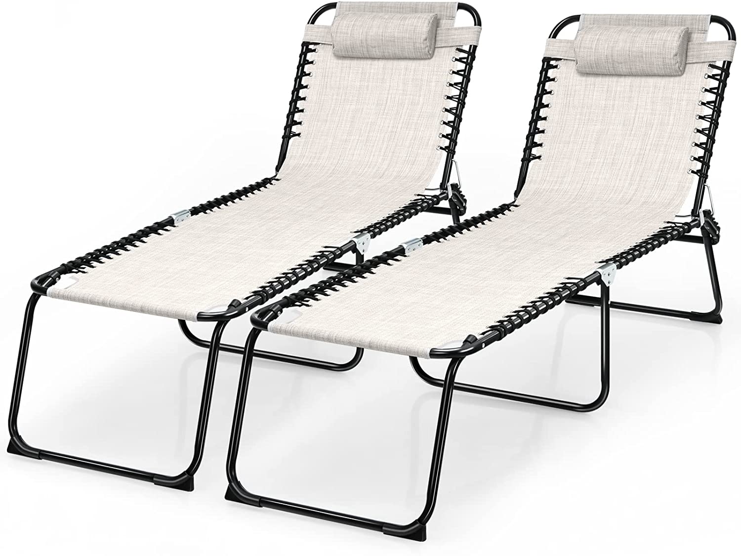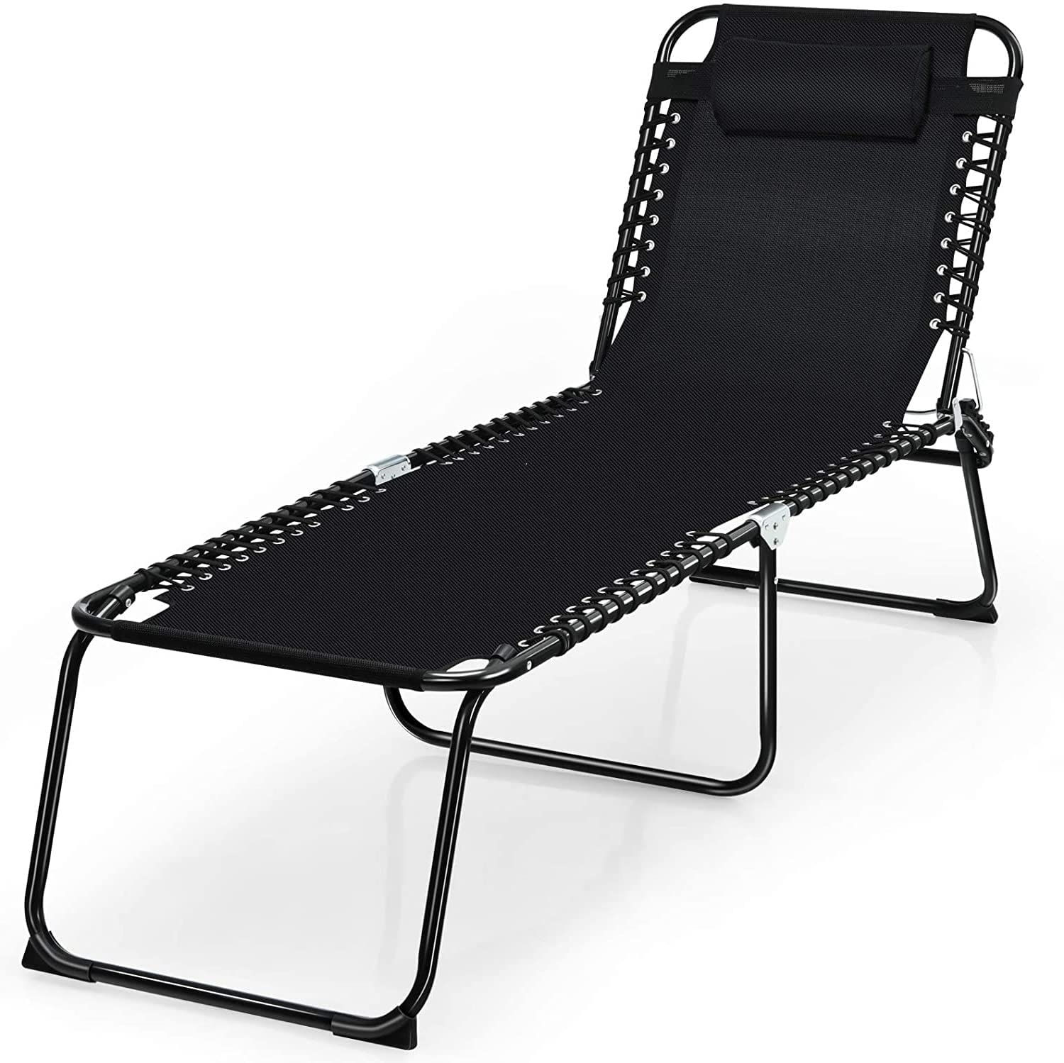 Outdoor Folding Chaise Lounge Chair, 4-Position Adjustable Reclining Chair with Pillow