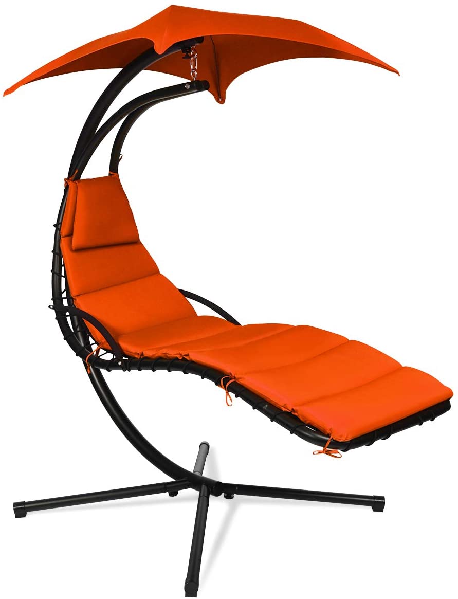 Hanging Chaise Lounge, Arc Stand Floating Hammock Swing Chair w/ Canopy and Built-in Pillow