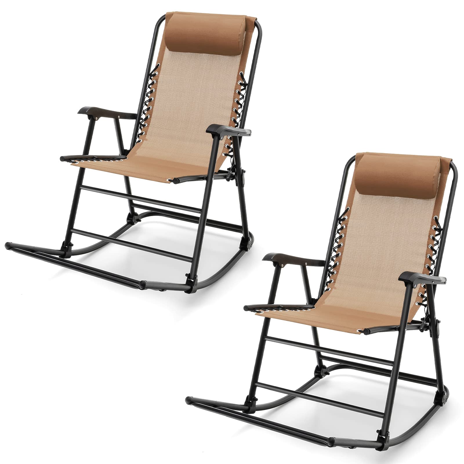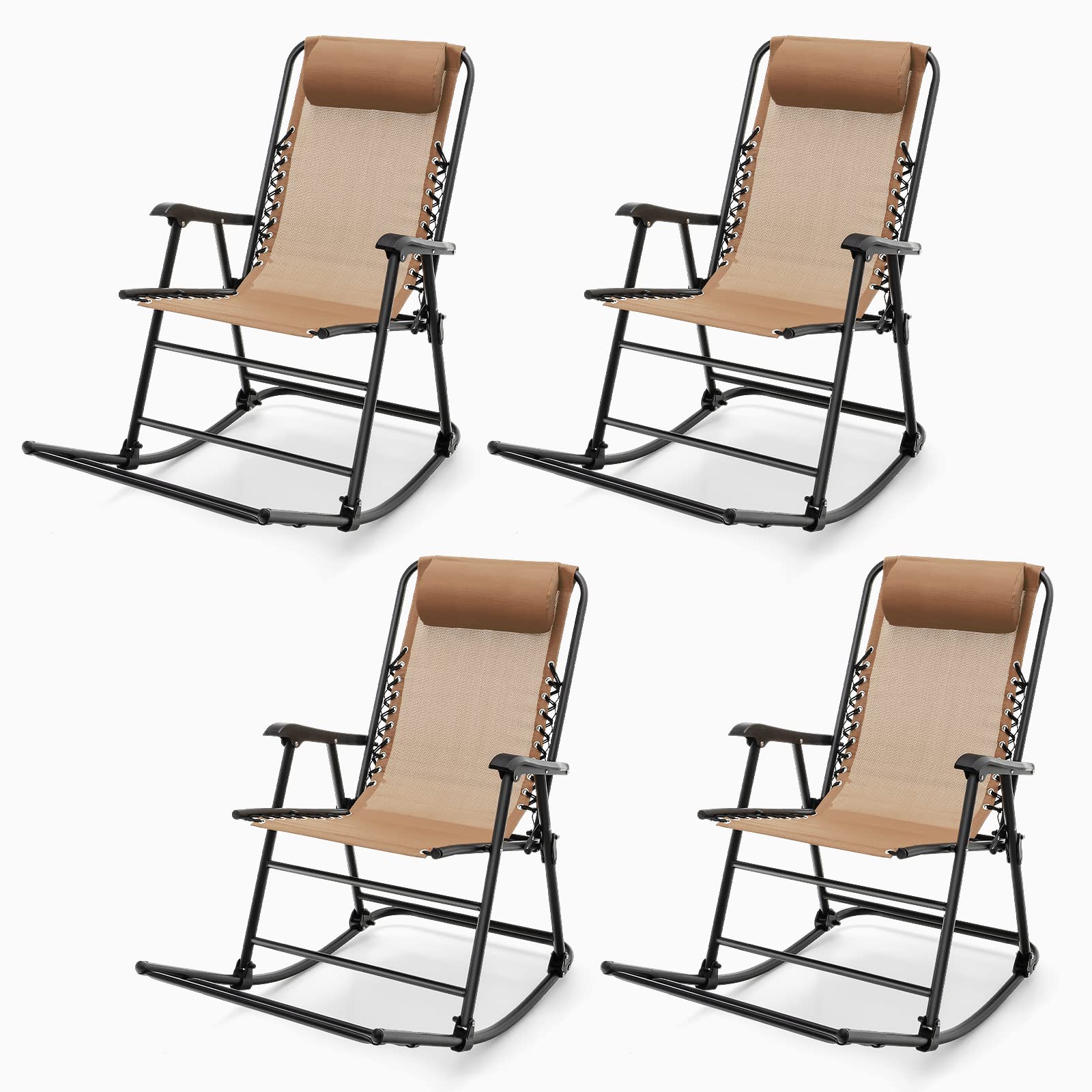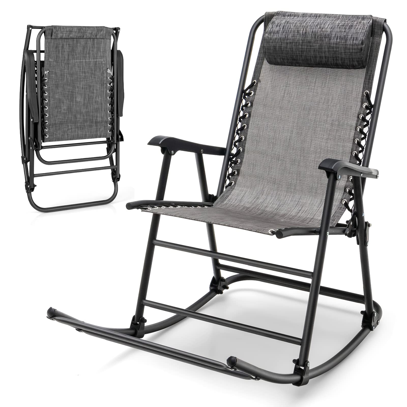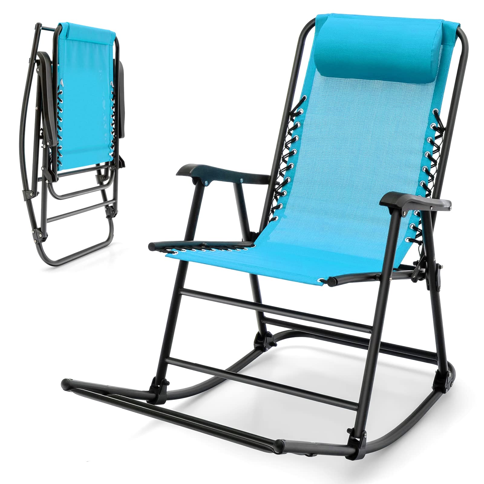 Outdoor Folding Rocking Chair, No Assembly Required, Foldable Rocker Recliner with Headrest