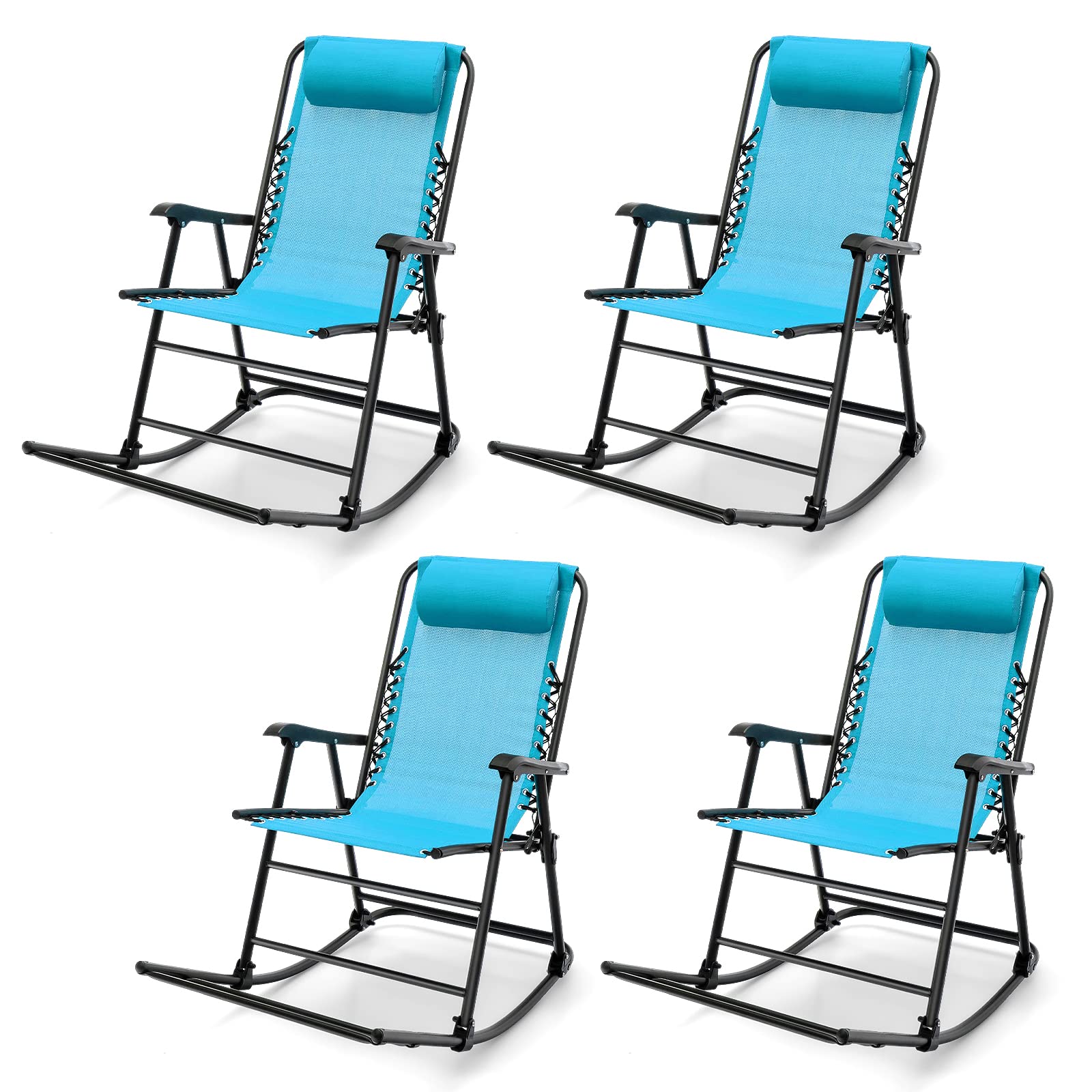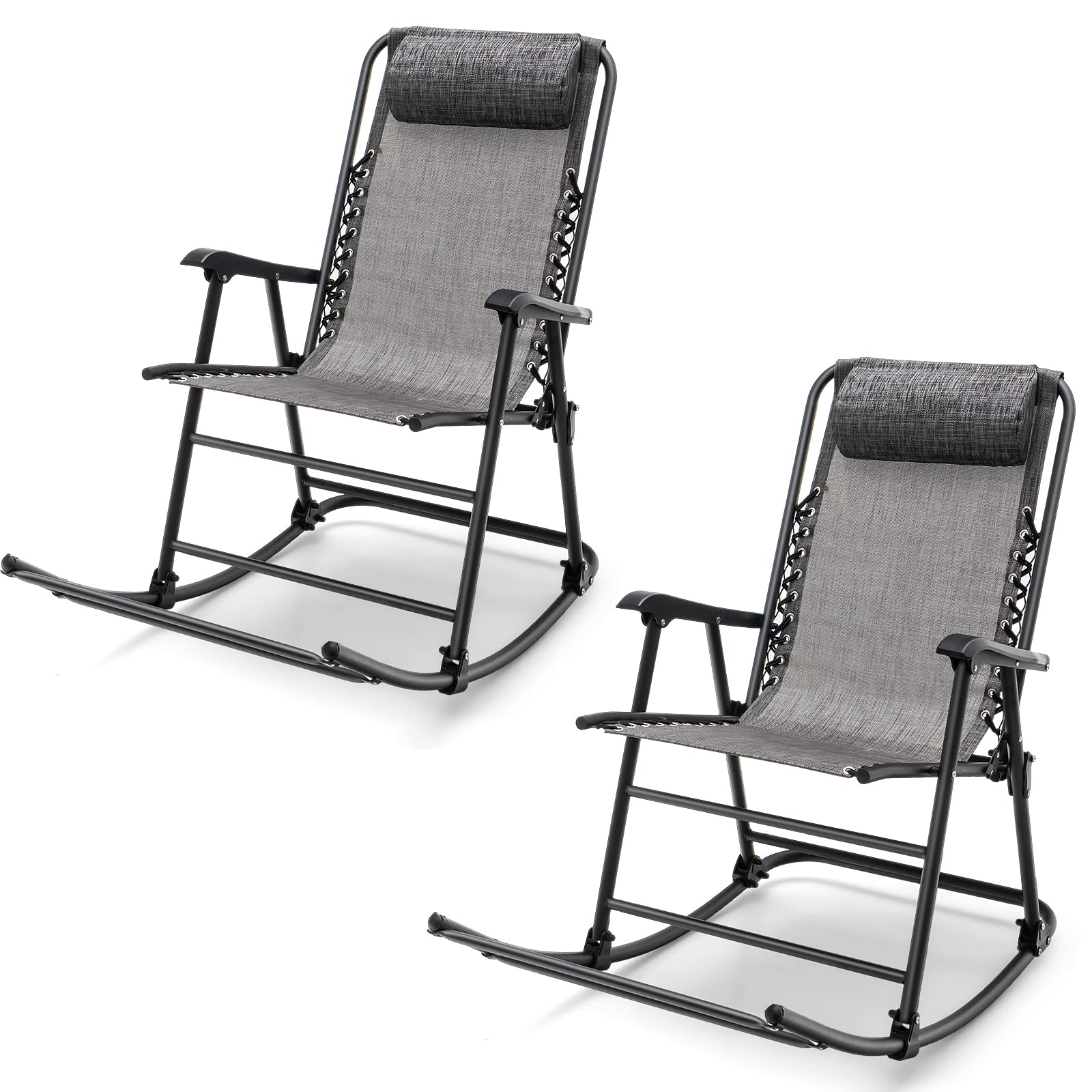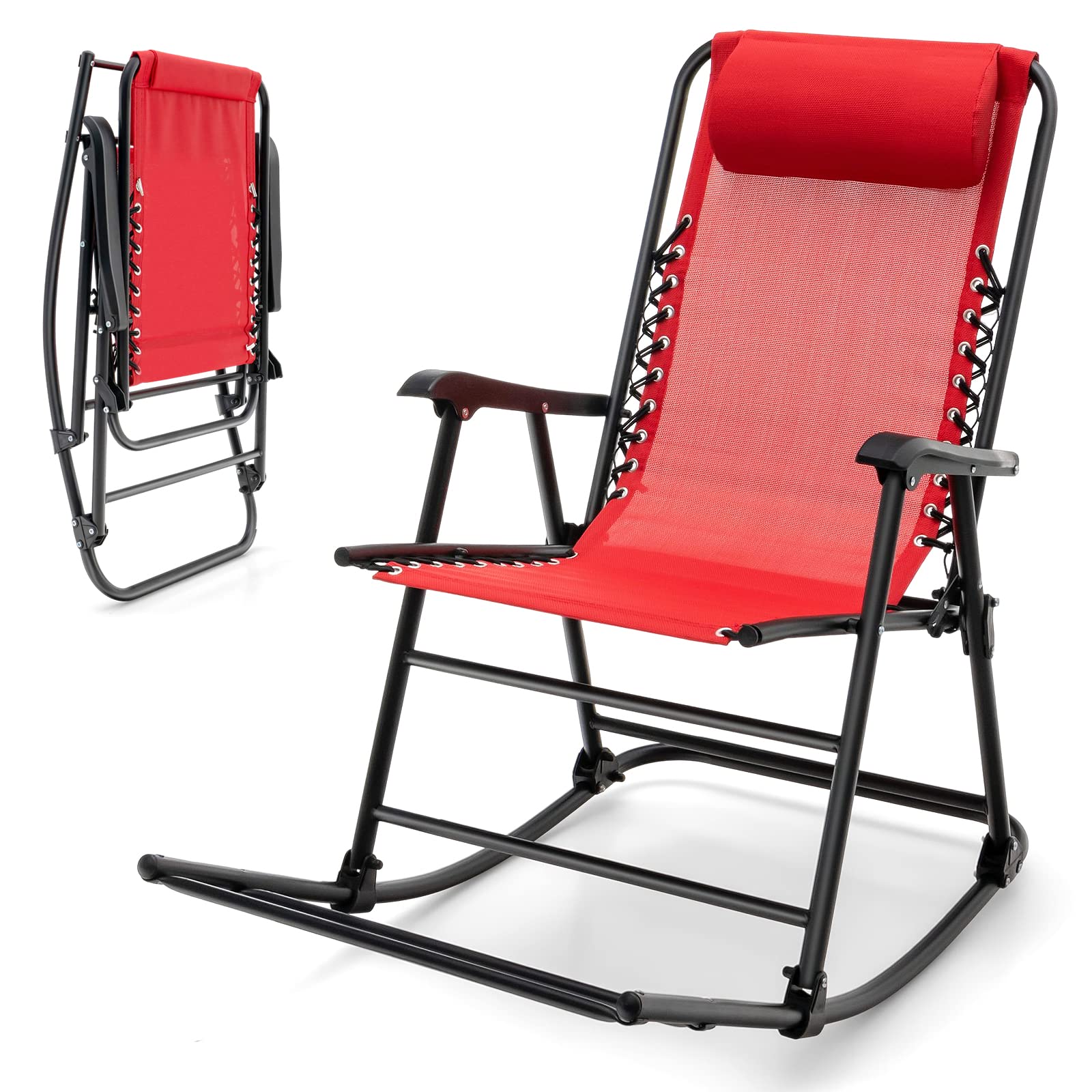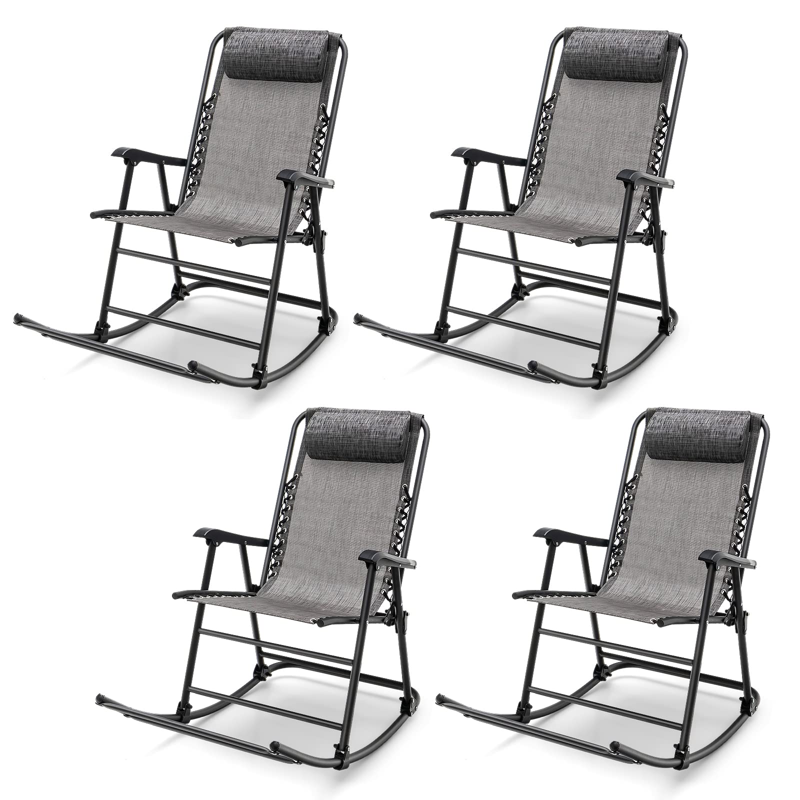 Outdoor Folding Rocking Chair, No Assembly Required, Foldable Rocker Recliner with Headrest