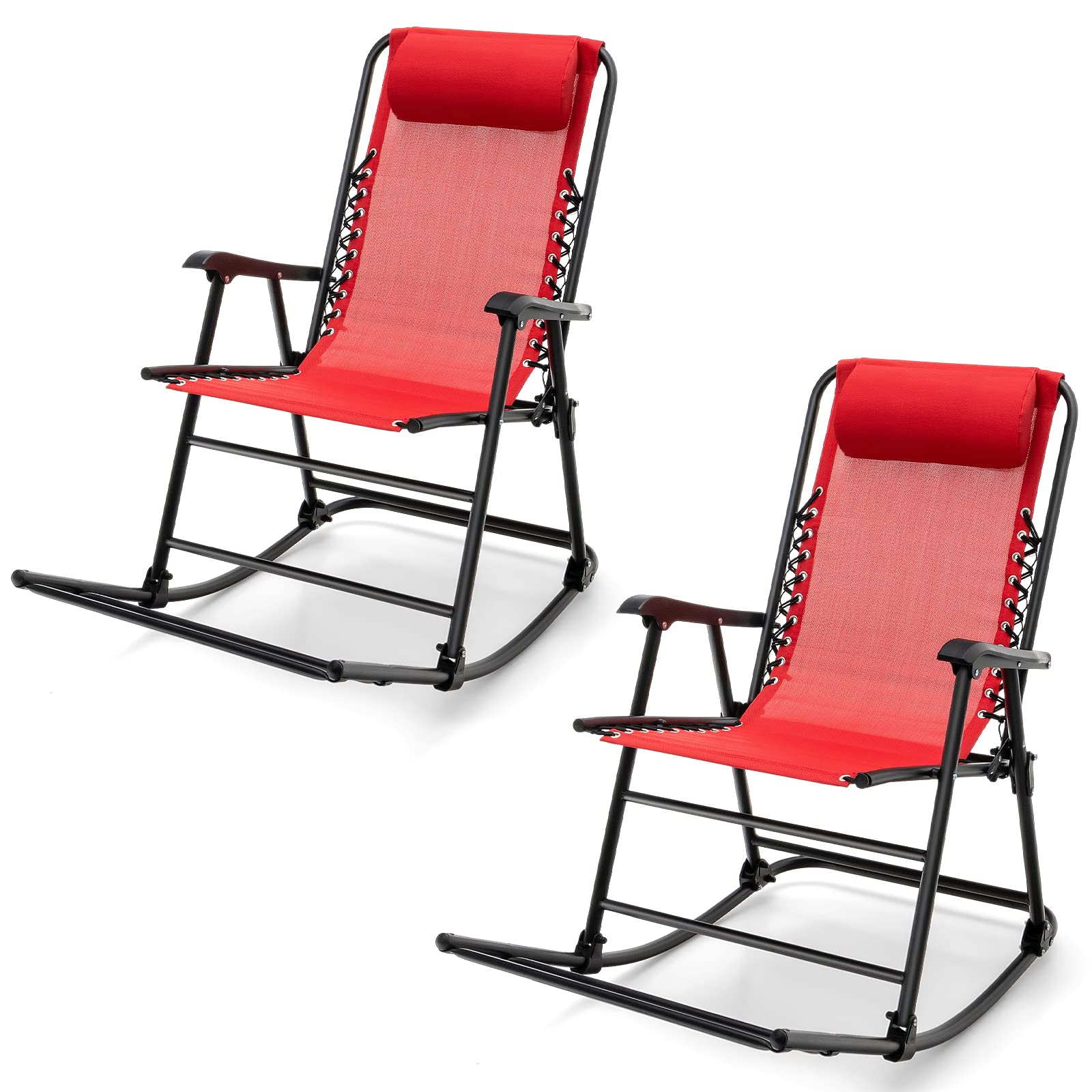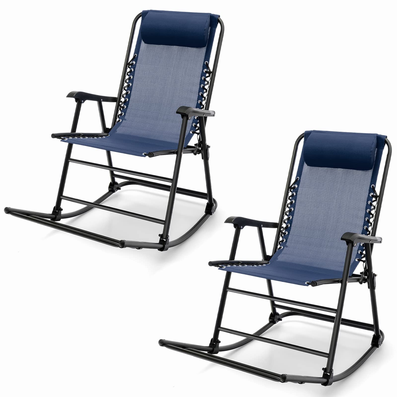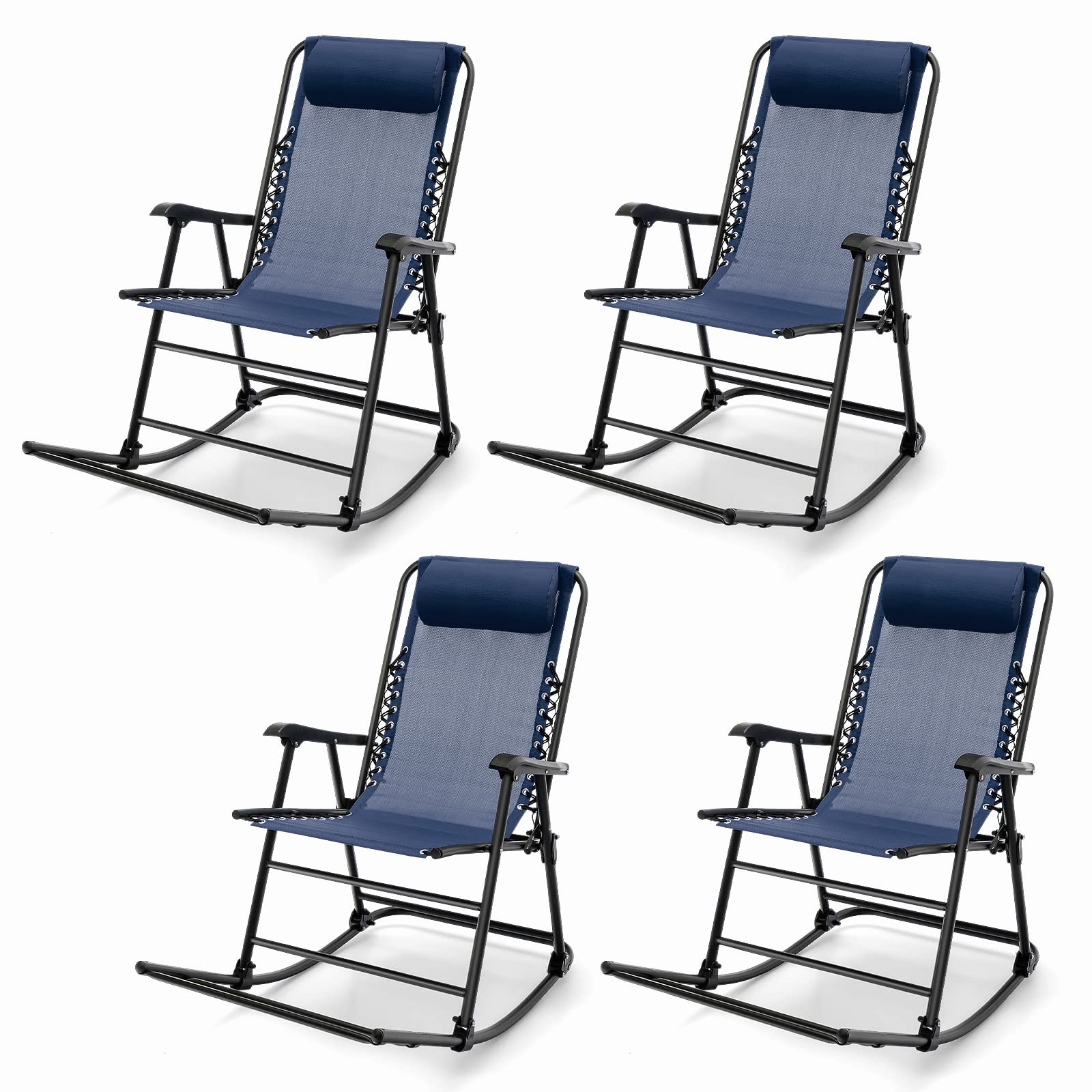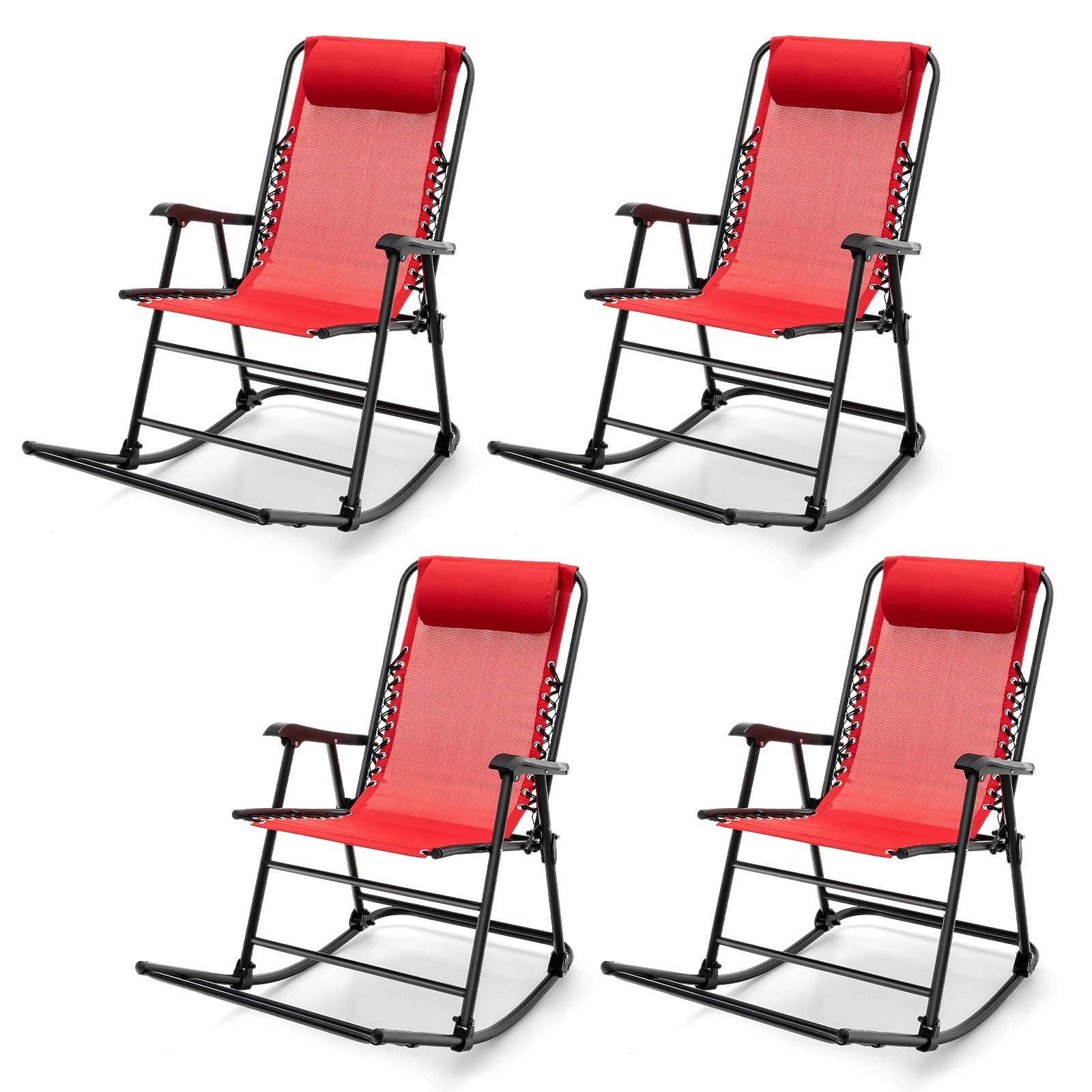 Outdoor Folding Rocking Chair, No Assembly Required, Foldable Rocker Recliner with Headrest