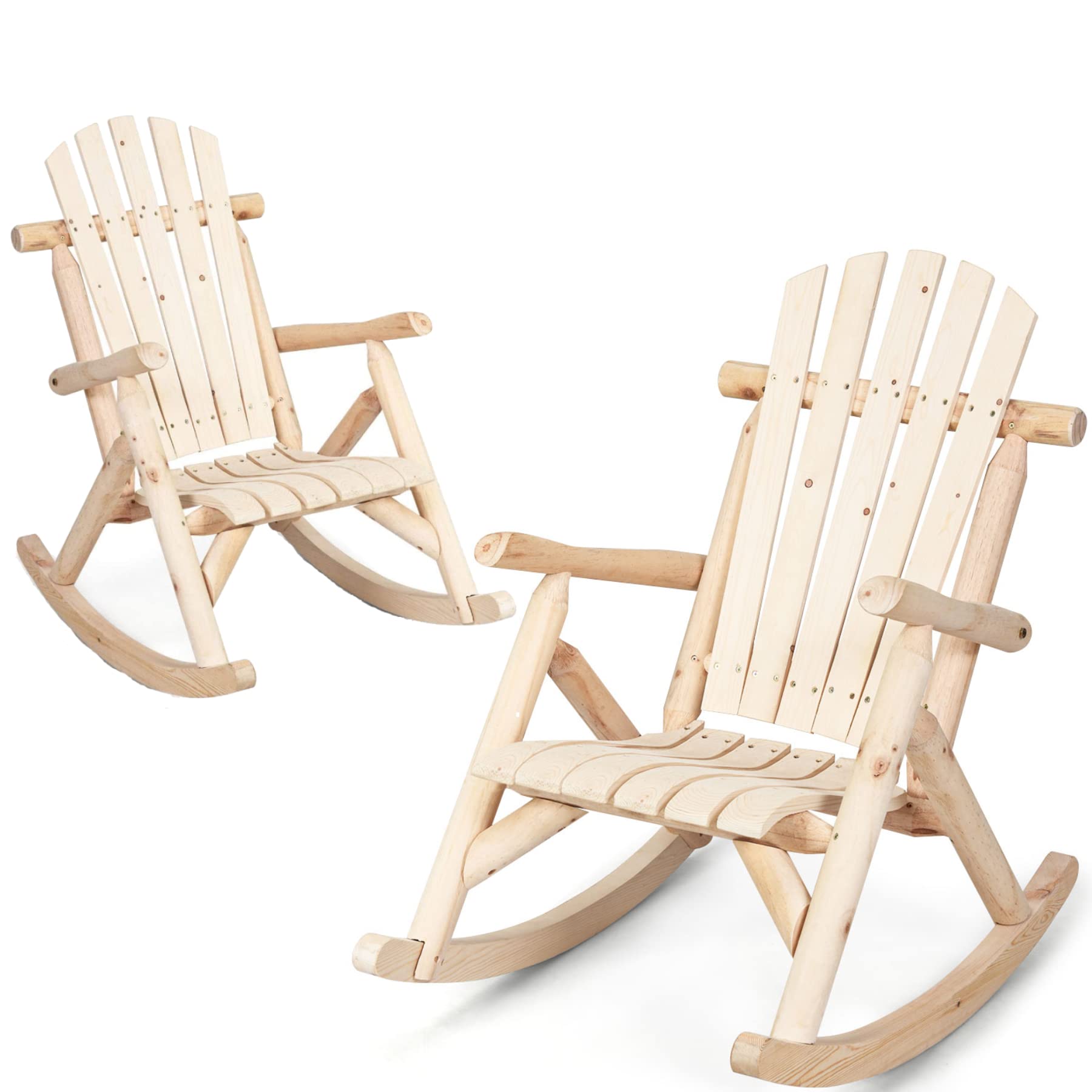 Tangkula Log Rocking Chair, Outdoor Wood Porch Rocker Chair(1 & 2, Natural)