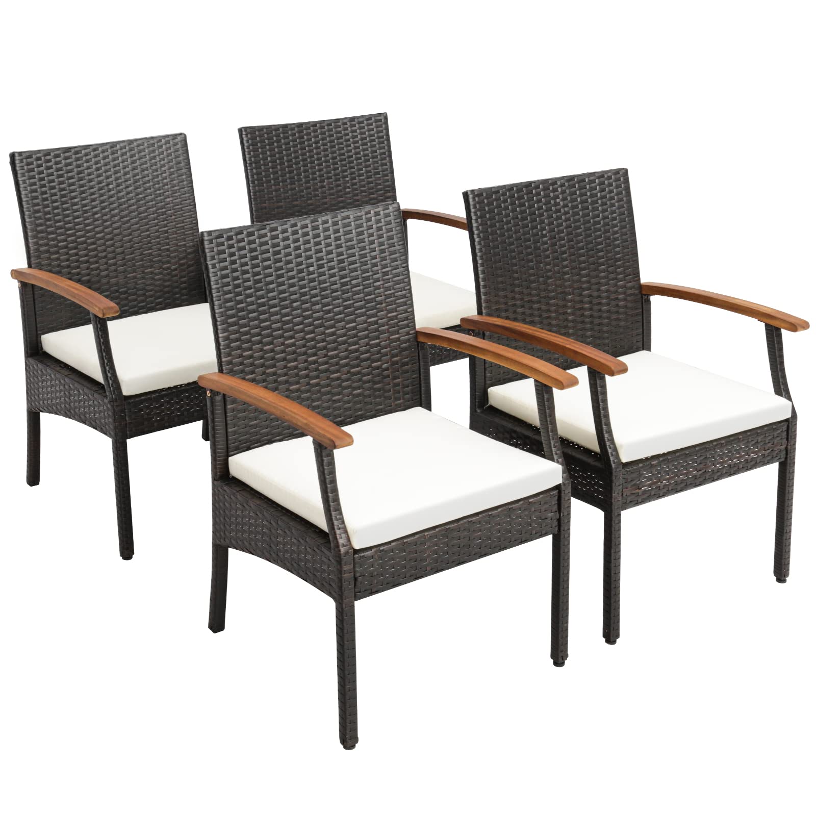 Tangkula Patio Wicker Dining Chair Set of 2, Outdoor PE Rattan Armchairs with Removable Cushion