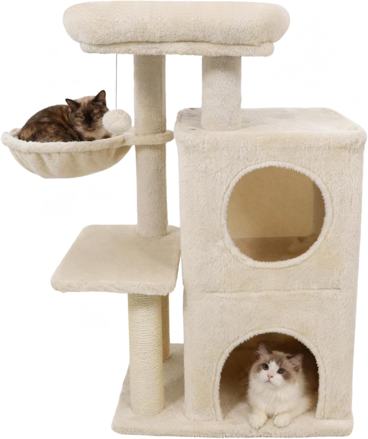 Description This cat activity tree is versatile and satisfies various cat needs, including perching on the top, resting in the hammock, lounging in the condo, and...