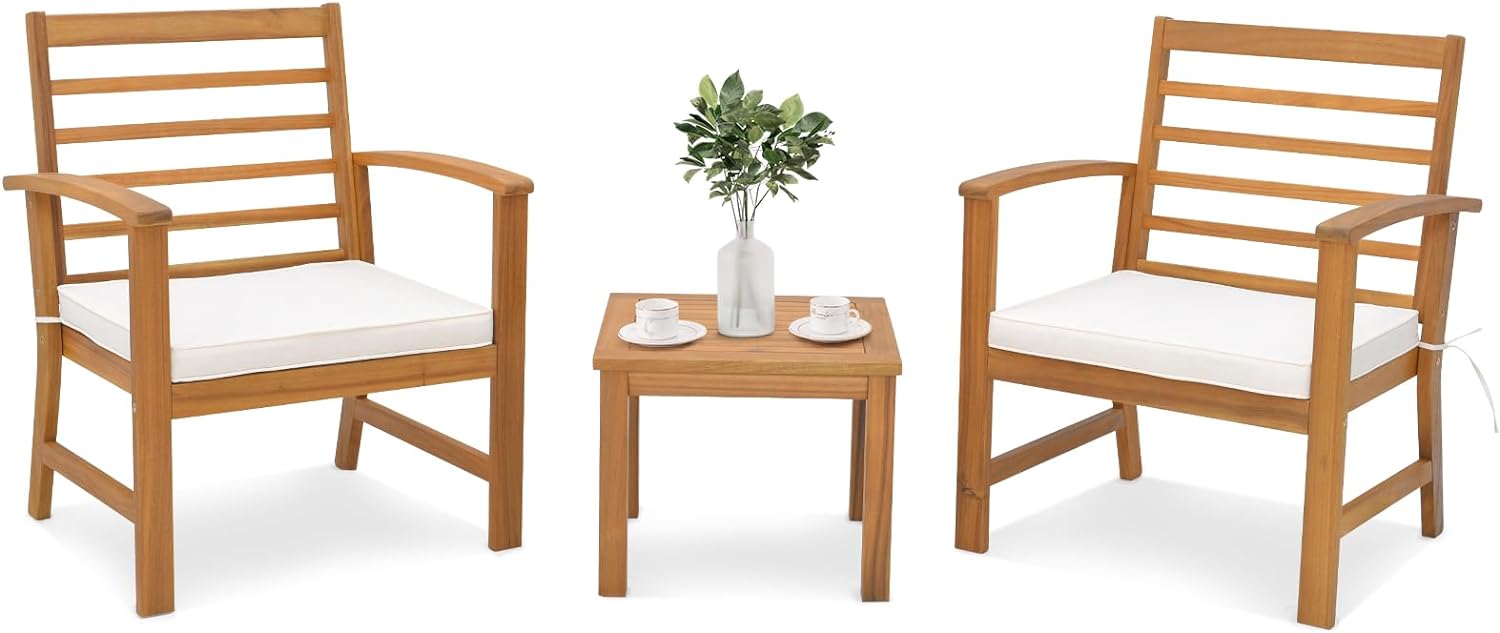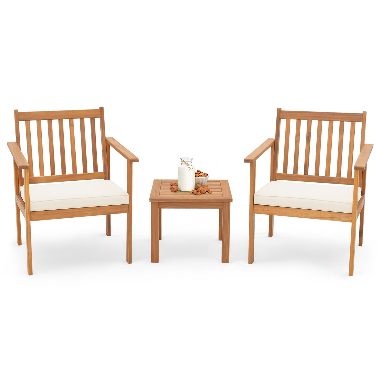 Tangkula 3 Pieces Outdoor Furniture Set, Acacia Wood Conversation Set with Soft Seat Cushions