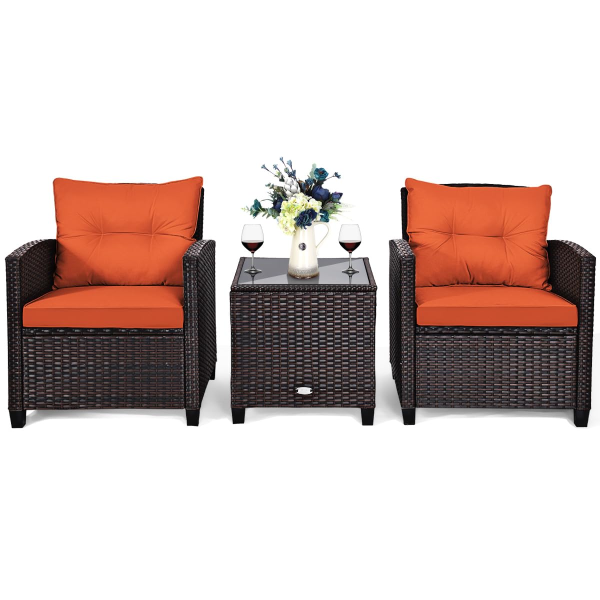 Tangkula 3 Pieces Patio PE Wicker Furniture Set with 4 Bonus Cushion Covers