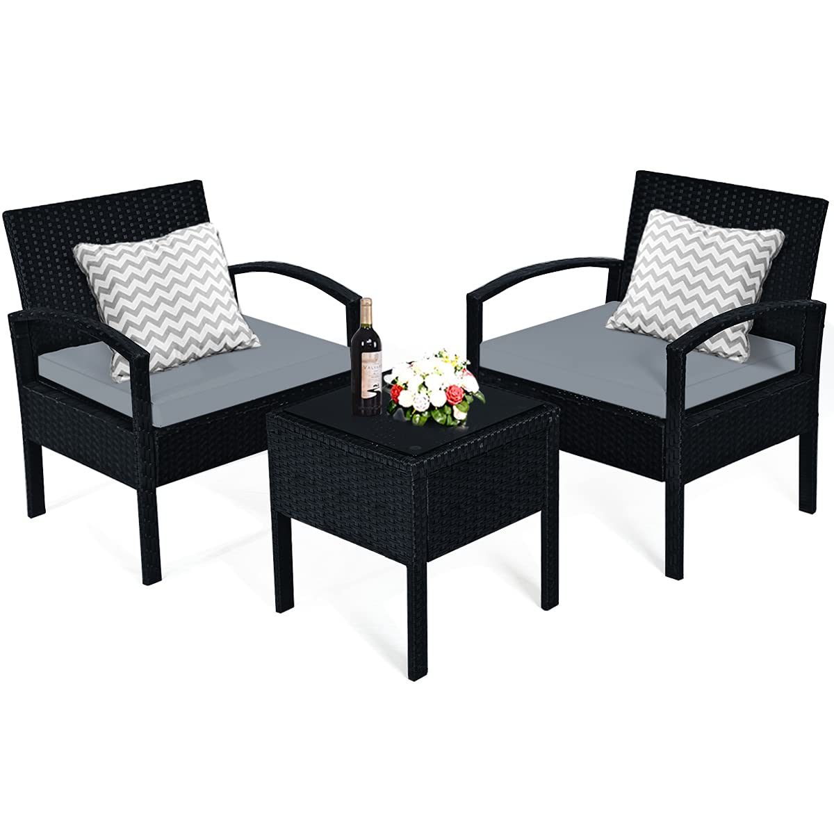 Tangkula Patio Furniture Set 3 Piece, Outdoor Wicker Rattan Conversation Set