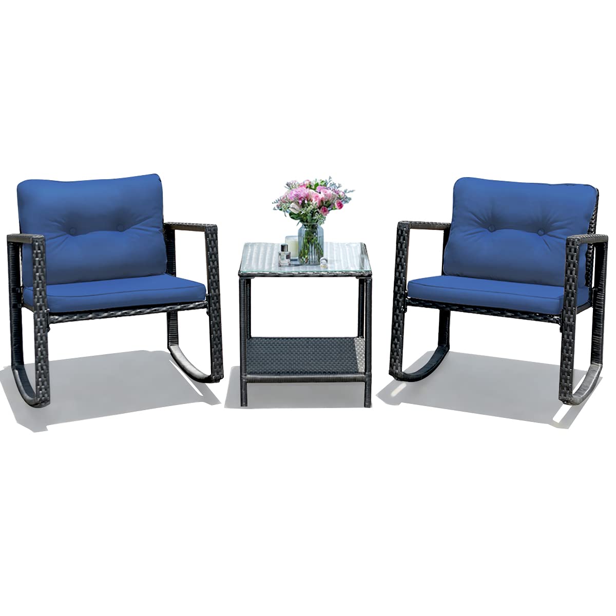 Tangkula 3 Piece Patio Rocking Bistro Set with Tempered Glass Coffee Table