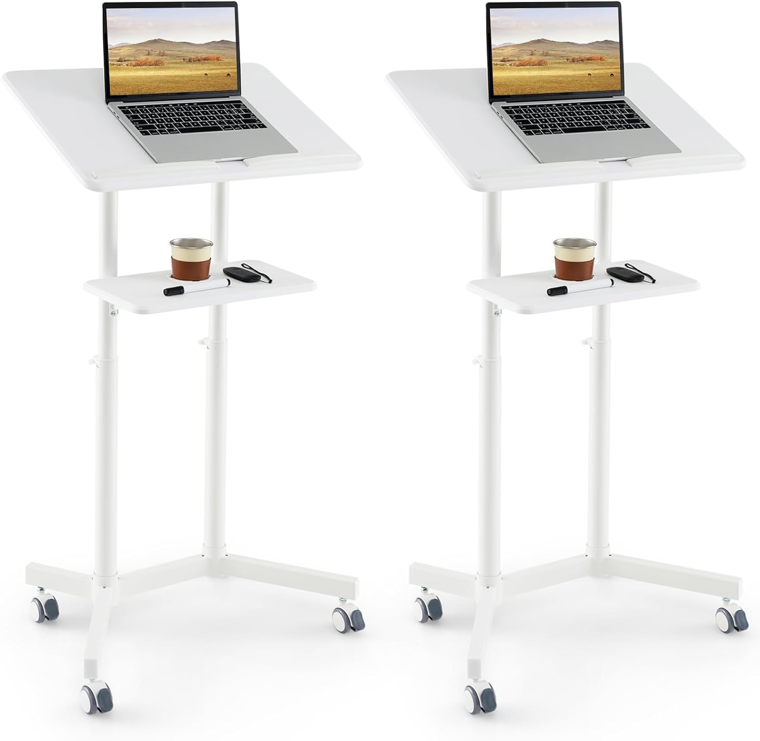 Tangkula Mobile Stand Up Desk, Adjustable Computer Desk, Height Adjustable and Special Tilting Surface Design