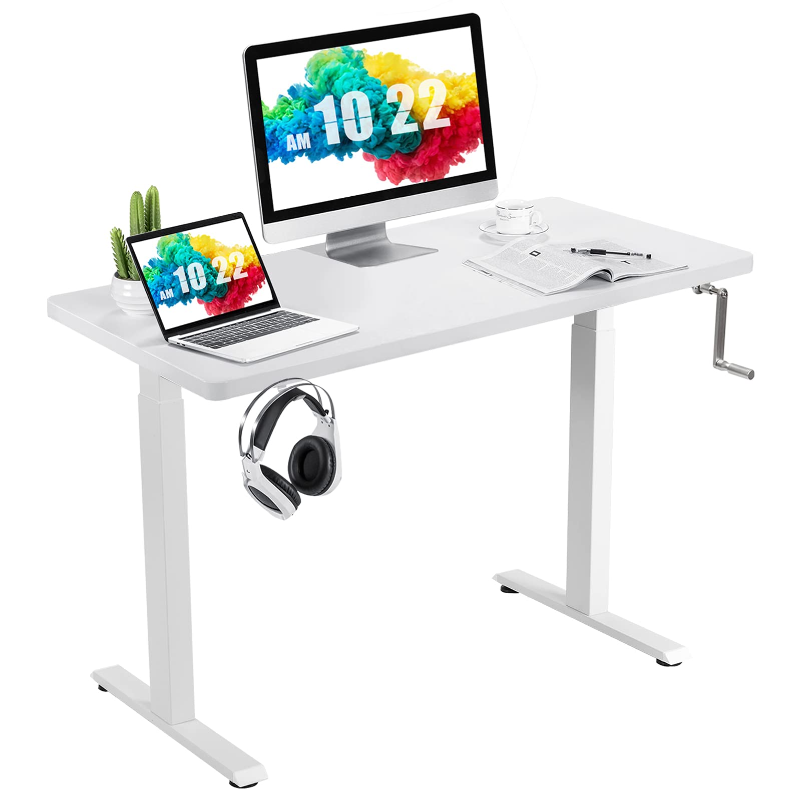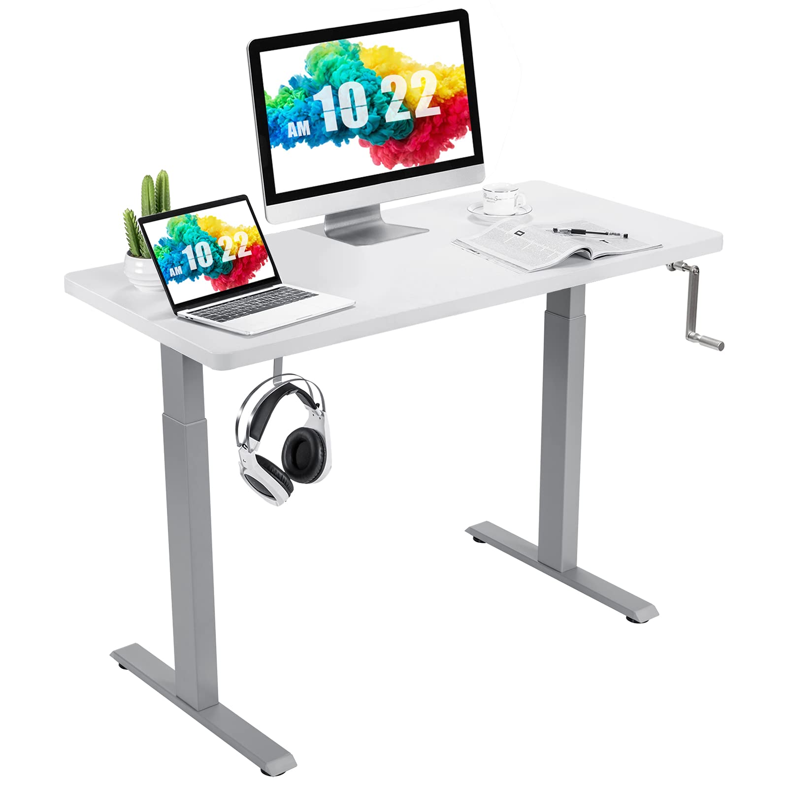 Manual Height Adjustable Standing Desk, 48" x 24" Crank Sit to Stand Desk
