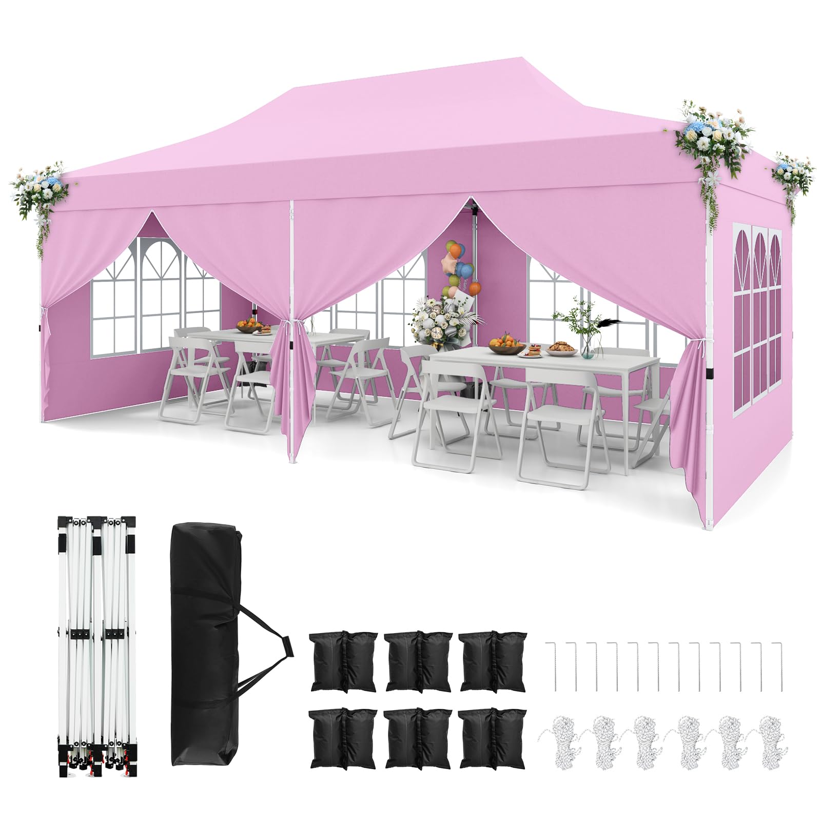 Tangkula 10x20 Ft Pop Up Canopy with 6 Sidewalls, Instant Setup Canopy Tent with 2 Zippered Door, Windows, Carrying Bag