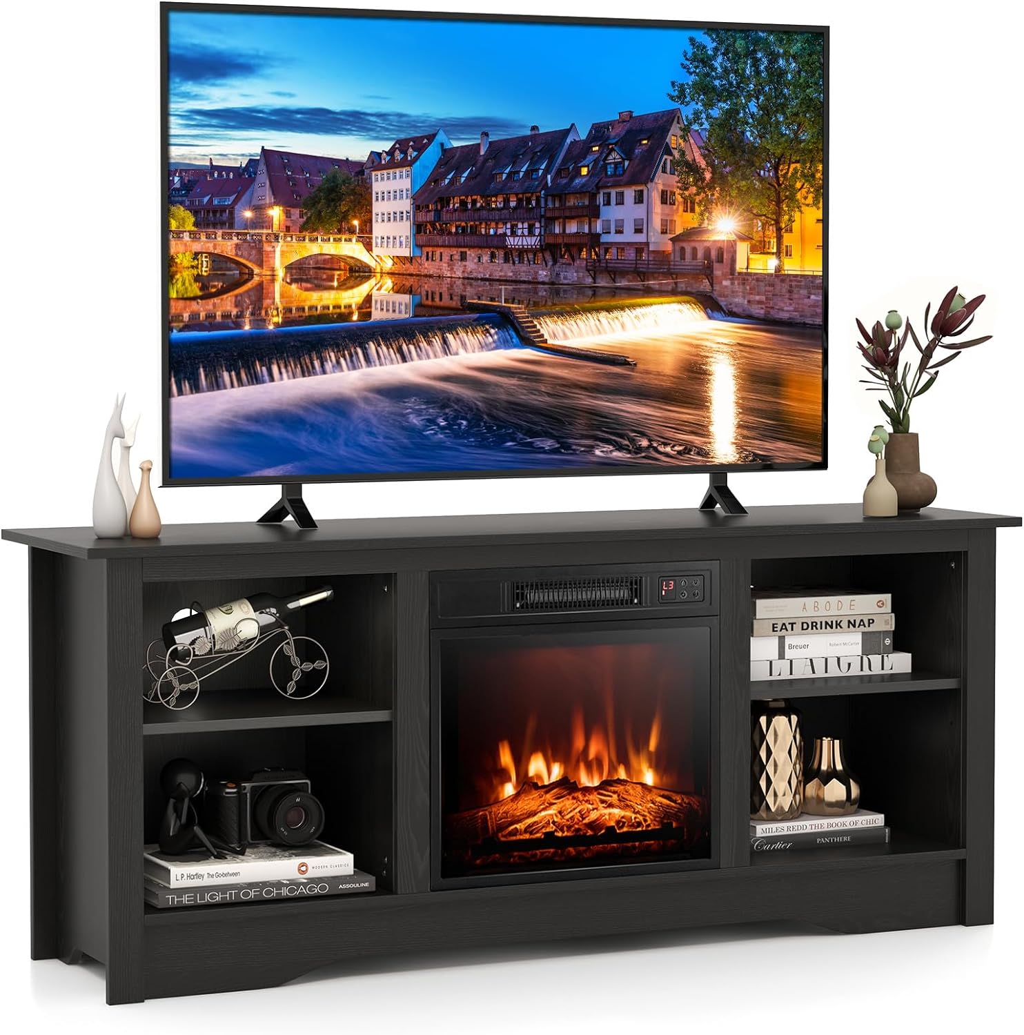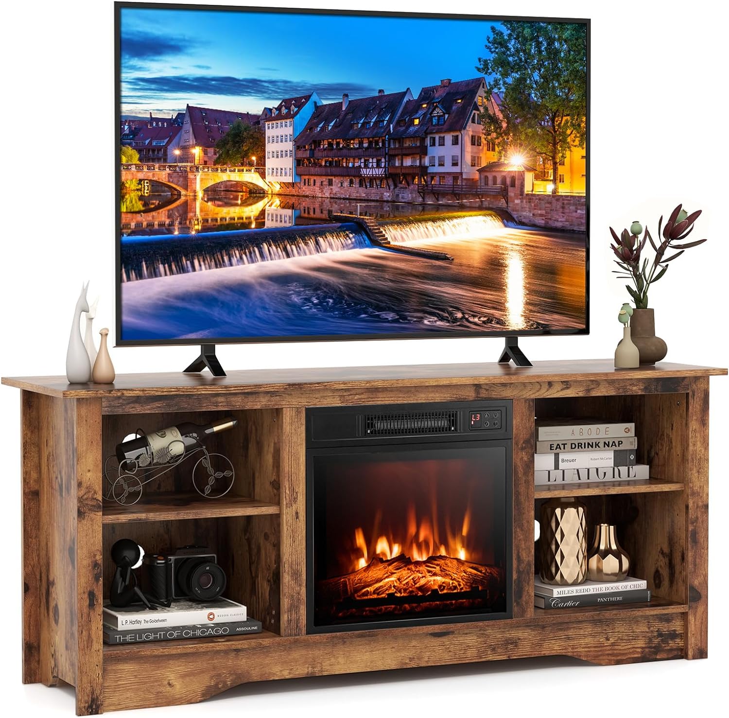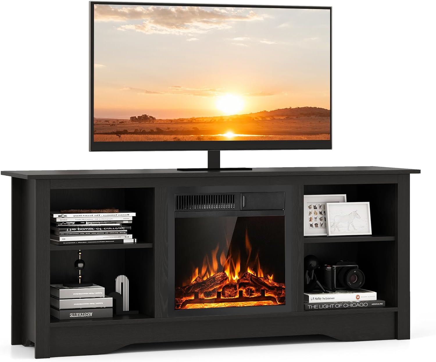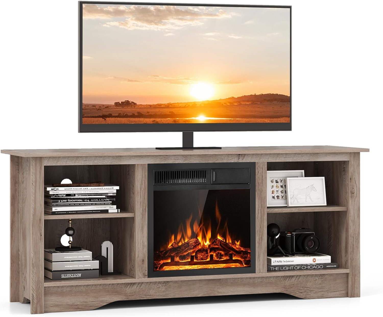 Tangkula Electric Fireplace TV Stand, 59 Inches TV Console