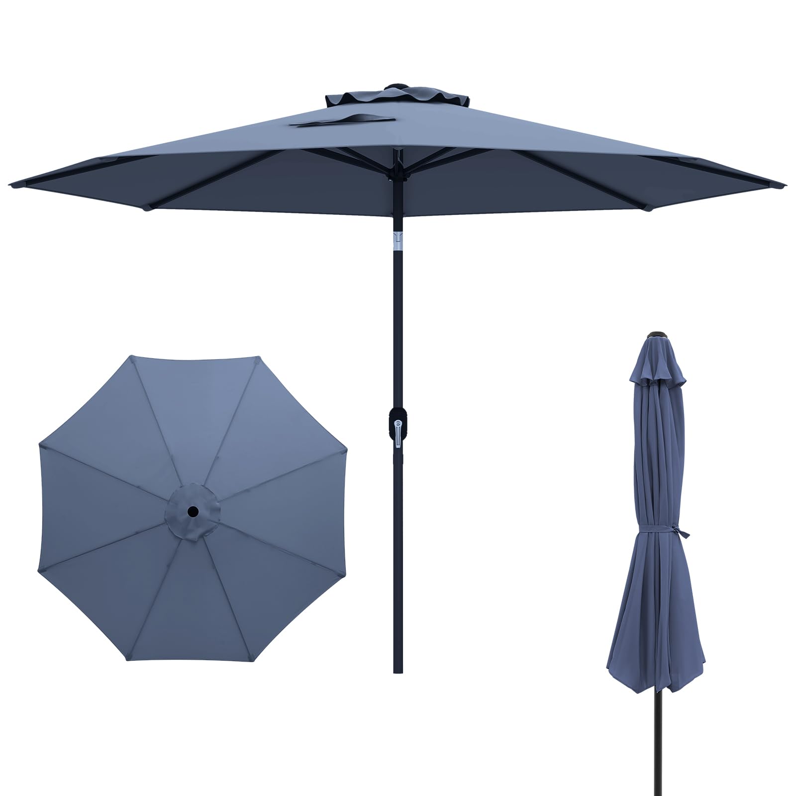 Parasol de patio de 3 m, parasol de marché extérieur avec inclinaison à bouton-poussoir