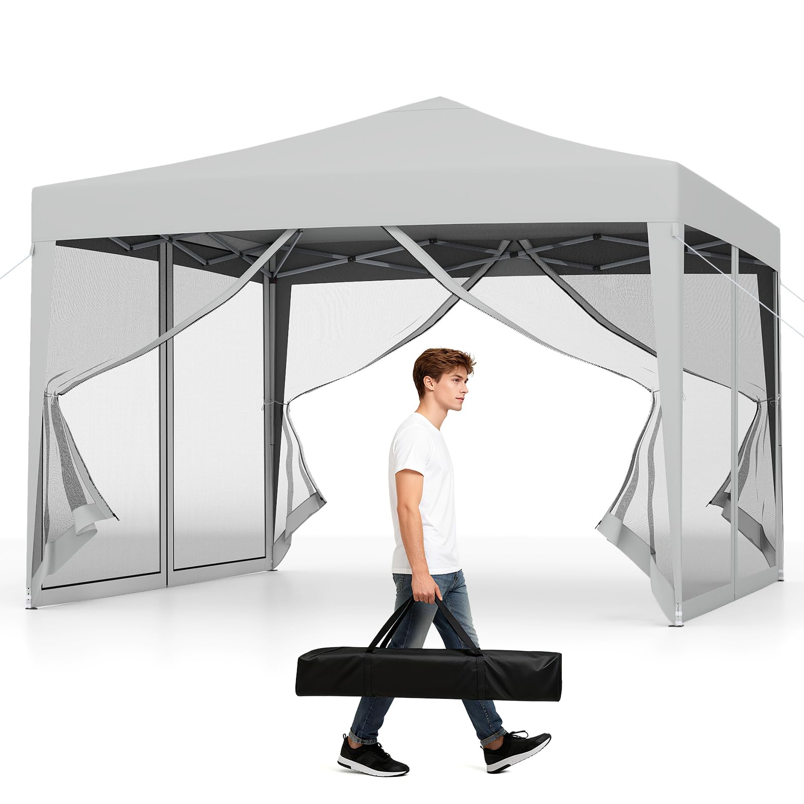 Tonnelle escamotable 3x3 m avec moustiquaire, tente de réception extérieure avec sac de transport