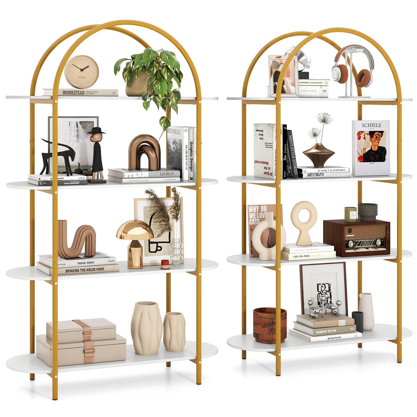 Tangkula 4 Tier Arched Bookshelf 61.5” Industrial Modern Freestanding Storage Rack (1 Pack/2 Pack)