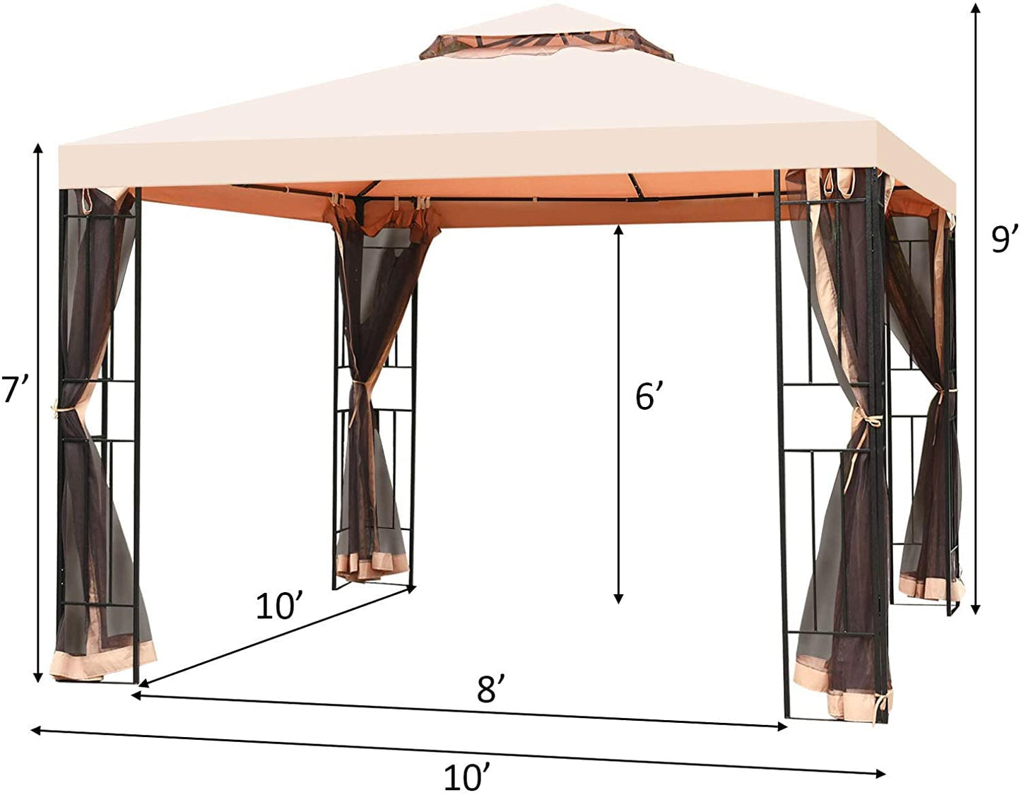 10x10 Feet Patio Gazebo, Outdoor Steel Gazebo with Netting