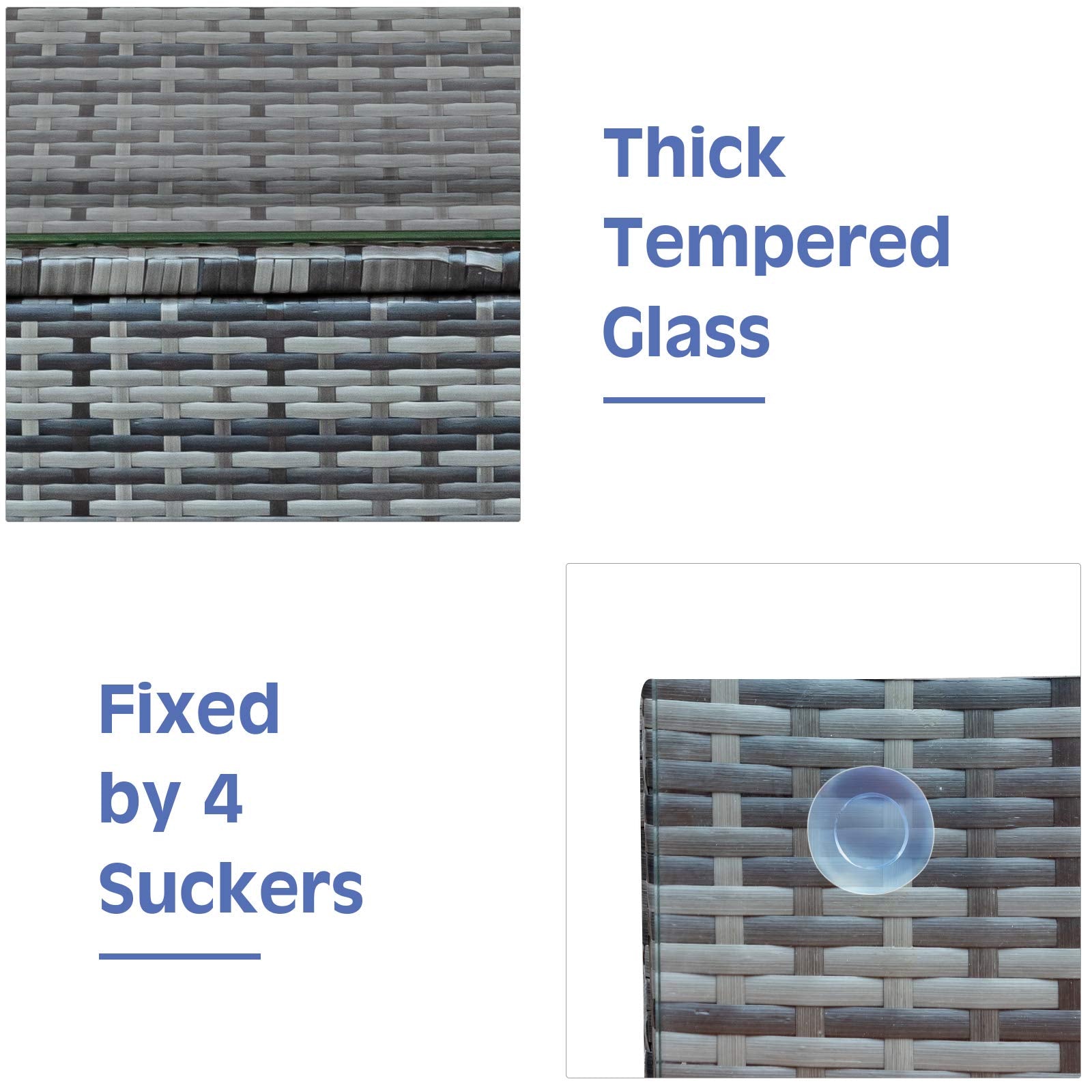 Material: Steel, Rattan, Tempered Glass, Sponge