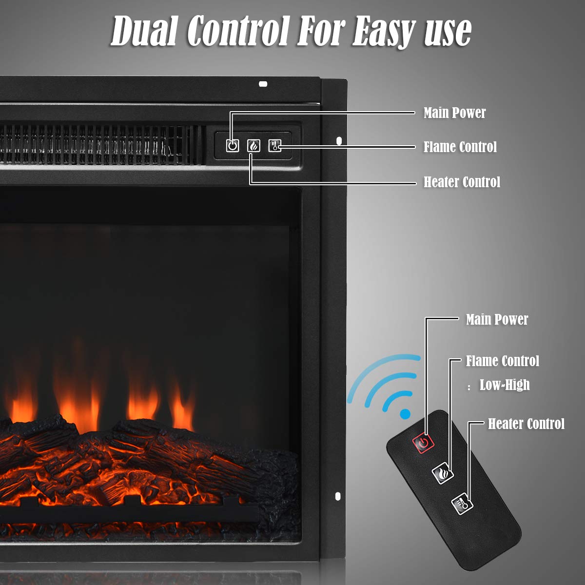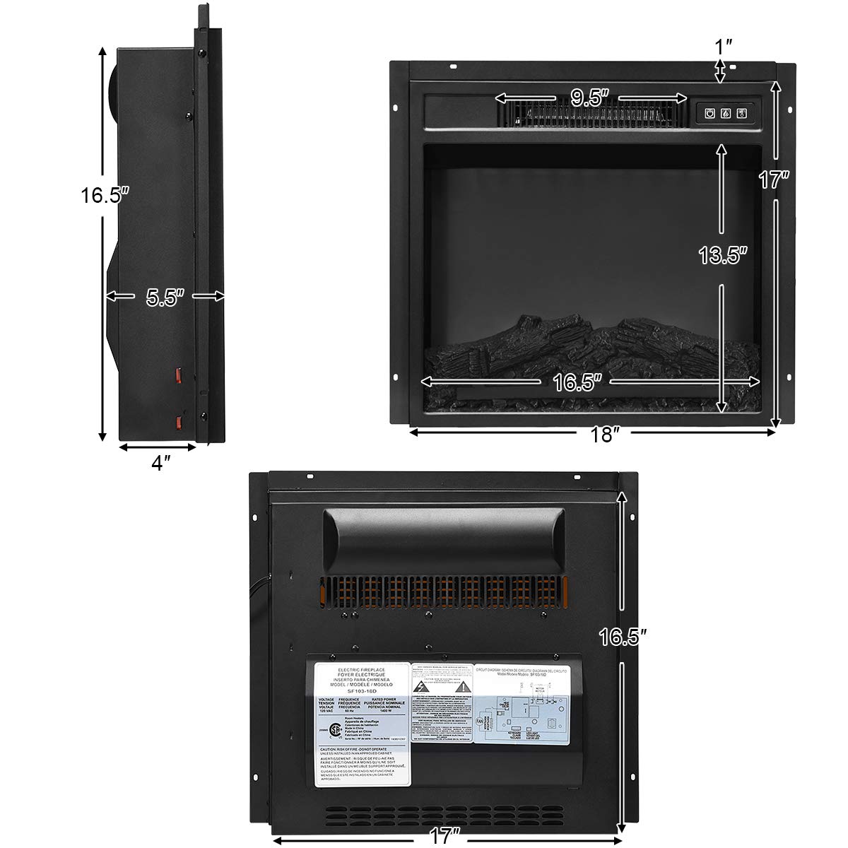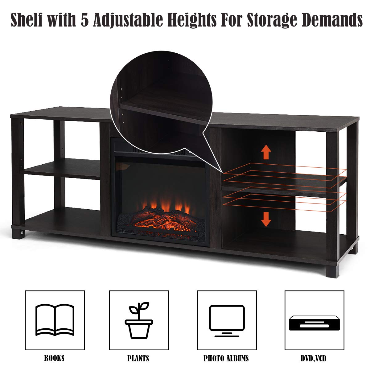 Our fireplace stand with a 1400W electric fireplace provides enough warmth to keep you comfortable on winter nights. Made of premium MDF and PB materials, our TV stand has a good load-bearing capacity which is up to 200lbs and it is suitable for 65 inch TV. This furniture stand has four shelves for storing audio video component equipment. Two of the shelves can be adjusted to 5 different positions to store your stuff at different heights. The fireplace will show a realistic fire experience with a log set and an ember bed. And there are three levels of luminance for you to choose from. Equipped with a remote control, you can adjust the fireplace in any place in the room. And you can rest assured that choose to use our electric fireplace because we have gained certification from CSA and UL. Please enjoy the comfort of the electric fireplace while watching your favorite TV shows or movies and create a welcoming environment in your home.