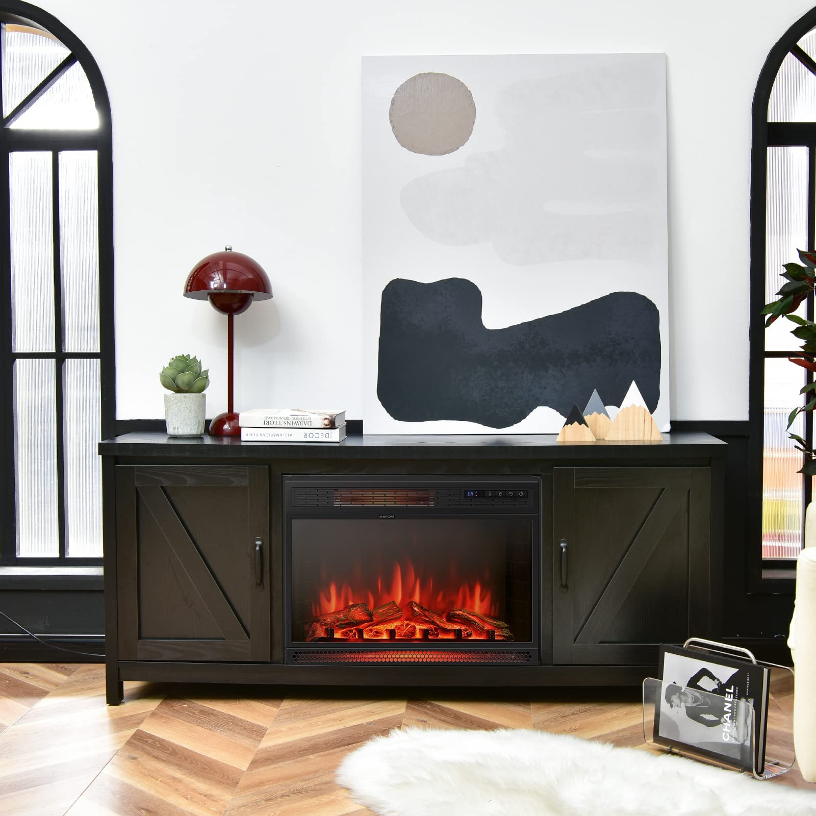 This 2-in-1 design fireplace TV stand is a wonderful addition to your living room, which fits a flat-screen TV of up to 65". Besides, adjustable shelves offer ample space to set up media players and keep your collection of DVDs on display. The middle layer and the fireplace insert are interchangeable, which can meet your different needs for warmth in winter and more storage space in summer. 25" electric fireplace let you enjoy the realistic flame with or without heating. Therefore, you can watch your favorite TV shows or movies in your home and enjoy the warmth and beauty brought by the fire. Comes with a convenient remote control, so you can adjust the fireplace easily without leaving where you are.