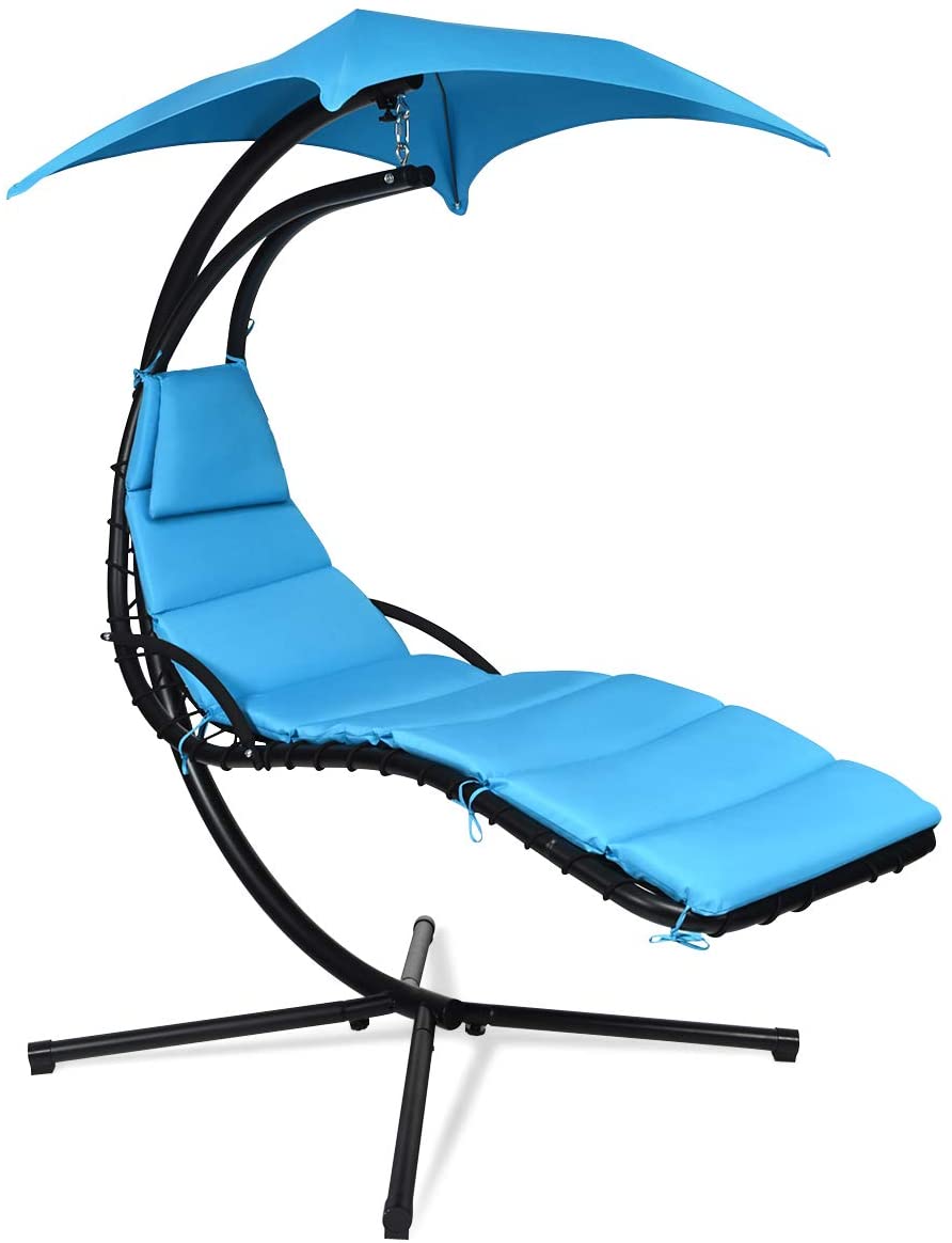 It combines super sturdy steel and comfortable cushion together, which can not only provide you with stability but can make you have a gentle lying time. The arch shape can well fit the curve of the body to reduce fatigue. X-shape base with non-slip pads firmly supports you with a 330lbs weight capacity. The adjustable canopy on the top is designed to block the sunlight to offer you a nice reading time outdoor. You can also enjoy a labor-saving cleaning time with its detachable cushion and canopy. Just enjoy great leisure time indoors or outdoors!