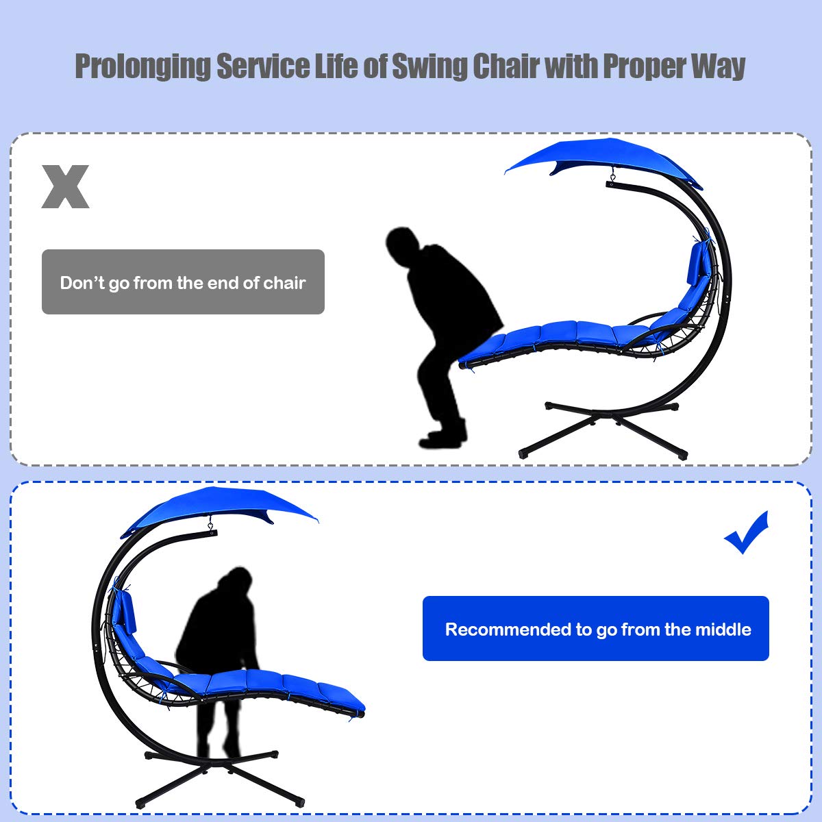 Hanging Chaise Lounge, Arc Stand Floating Hammock Swing Chair w/ Canopy and Built-in Pillow