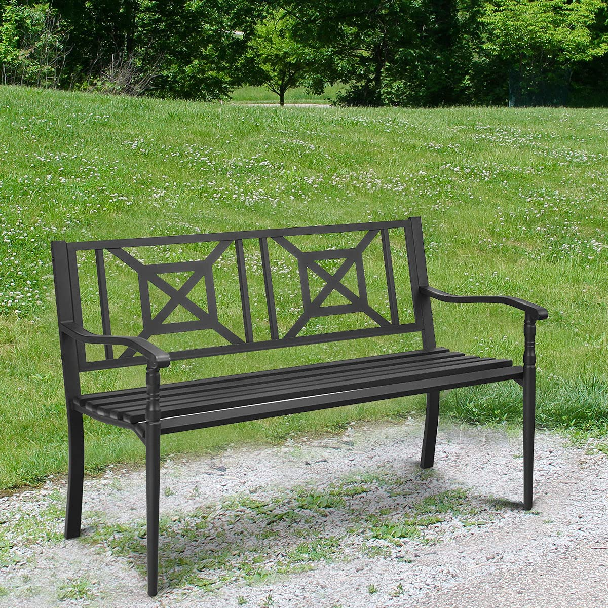 - Robust Metal Frame: Our garden bench is made of high-quality and powder-coated steel which is rust-resistant and weatherproof and can be used for a long time. In addition, no water can accumulate making the bench perfect for outdoor use.