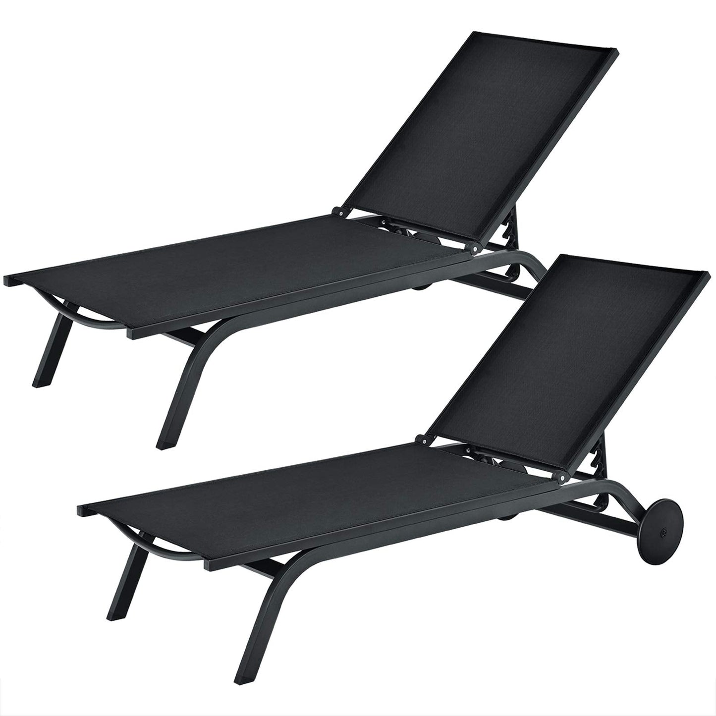 Are you looking for a chaise lounge to take a nap on the balcony, backyard, or garden? Come and check out our adjustable lounge chair! The adjustable backrest of the chaise lounge with six positions will satisfy your different needs for reading, lying, and sleeping. Made of solid aluminum and premium fabric, the frame of the lounge chair is sturdy and the seat is breathable. 2 wheels on the back allow for easy movement, which will also stand firmly. It's a perfect combination of practicality and aesthetics, which suits various occasions such as poolside, patio, porch, and seaside. This outdoor chaise lounge chair has a simple structure and allows you to assemble it in a short time.