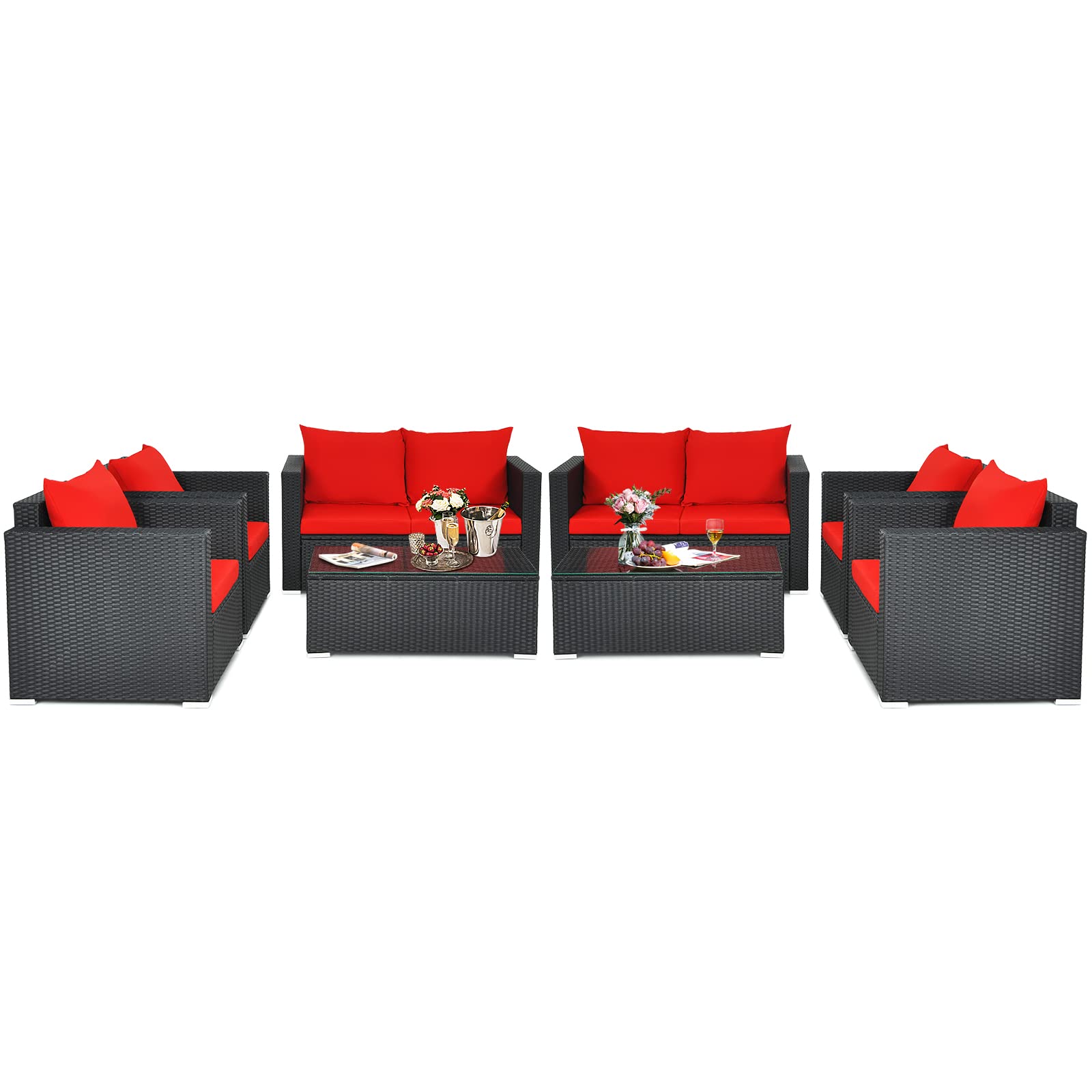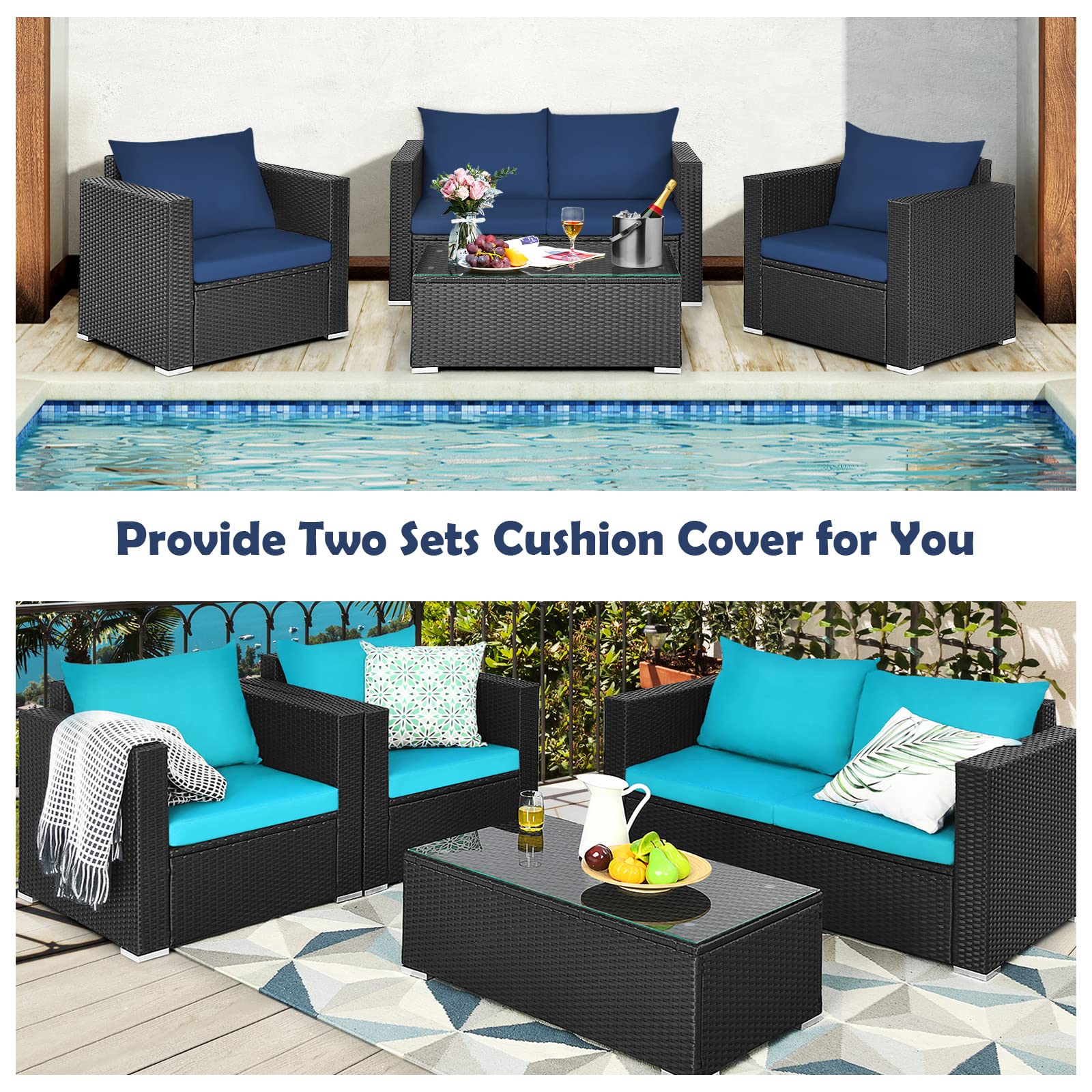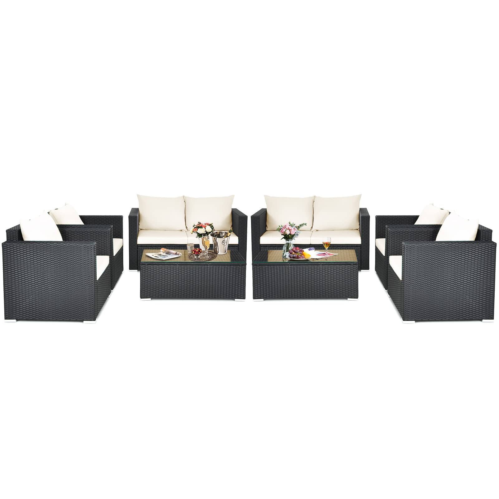 Are you waiting for a proper rattan sofa set to spend your leisure time on your patio or poolside? Our outdoor sofa set with a contemporary style can well satisfy your demand. Because of the soft seat and back cushions, this outdoor sofa set can provide you with a comfortable sitting experience. Widened armrests relax your arms and provide better support for your body. The frame is made of powder-coated steel and durable PE rattan wicker, which is sturdy enough to ensure a long lifespan. Aluminum foot pads at the bottom enhance the stability. Besides, the rattan table is equipped with a tempered glass tabletop, which is convenient for you to place some drinks and fruits on it. If the cushion gets dirty, you can simply zip off the cushion cover and wash it.