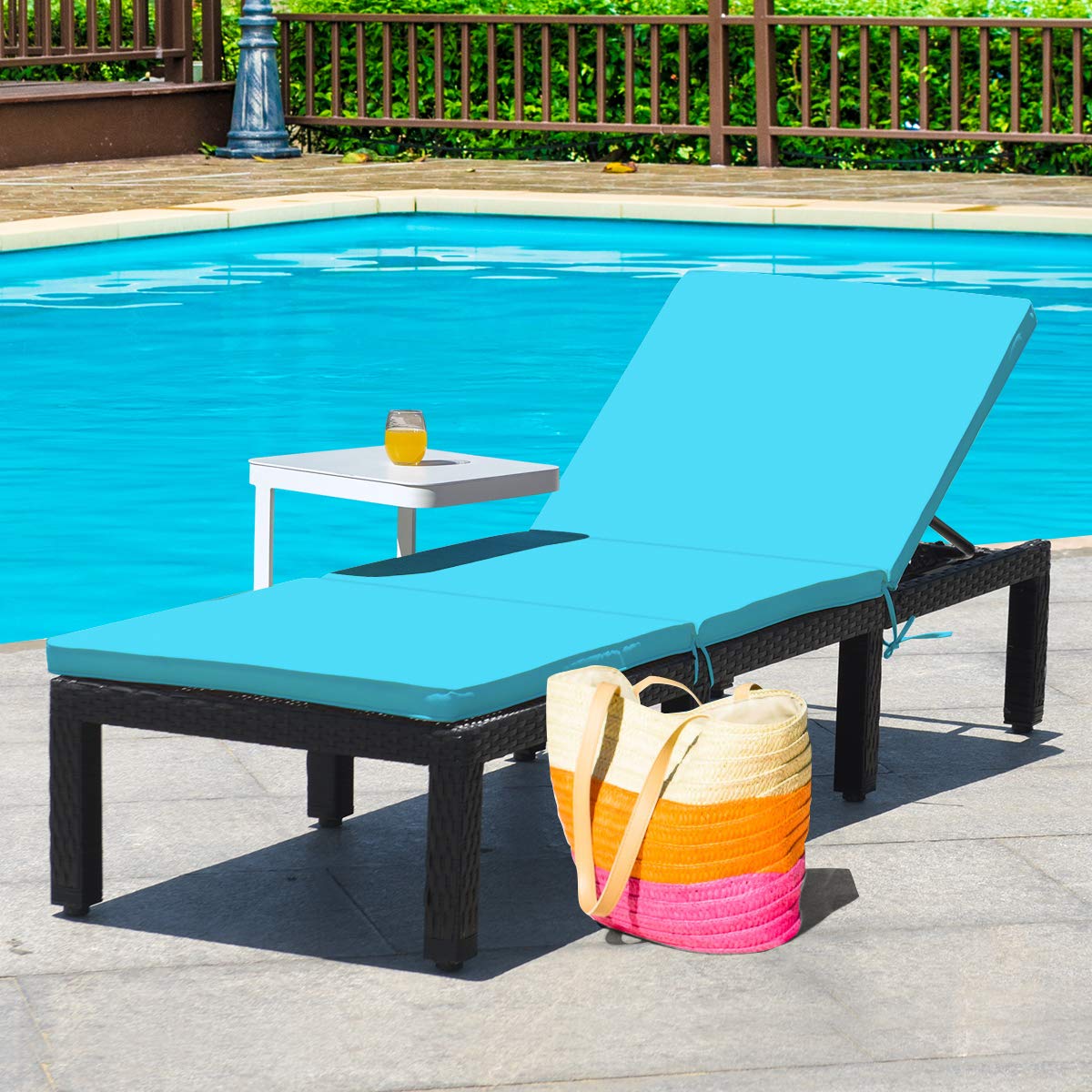 Size of rattan lounge chair: 77"x 25.5"x 15"/9.5"(LXWXH)